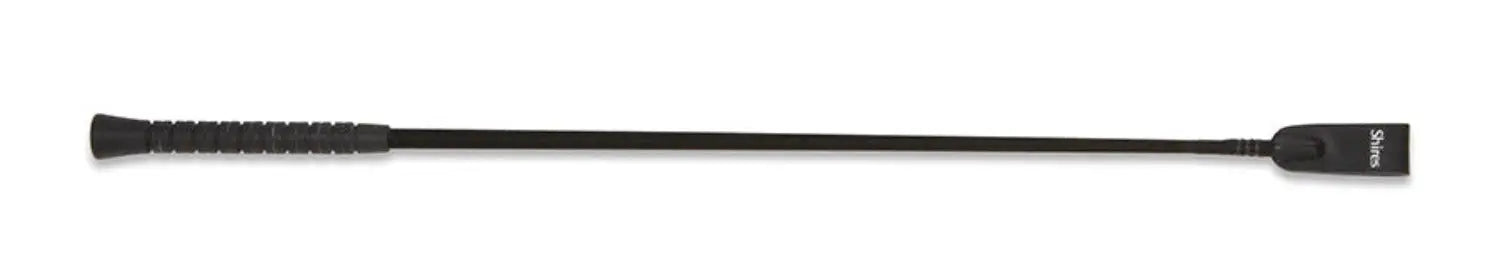 Threaded stem whip featuring an easy to hold rubber grip handle and leather keeper.