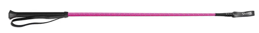 Threaded stem whip featuring fine reflective thread along its length, with a sturdy black plastic handle and hexagonal flared end to make it easy to hold with a leather wrist strap.