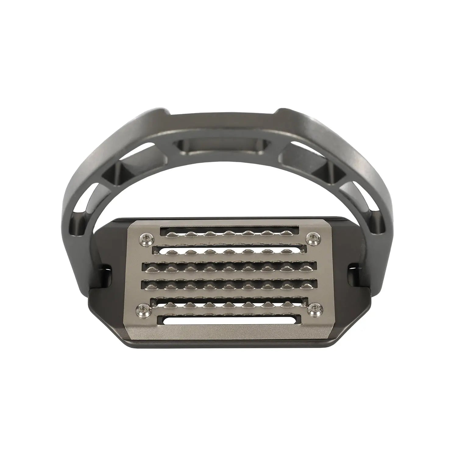 >The upper footbed is made of stainless steel, with long horizontal holes. The 5° inclined tread helps riders to assume the correct posture, relieving tension in the ankles, calves, knees and hips.
