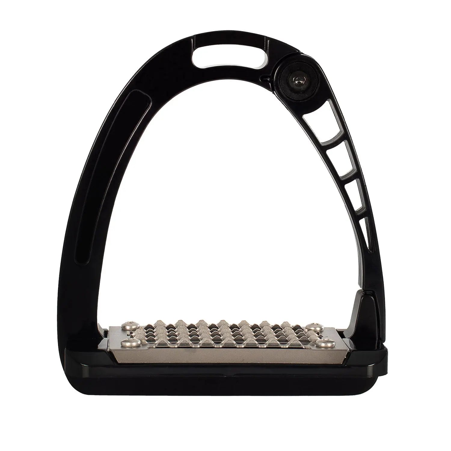 The Acavallo Arena Junior Stirrups Aluminium range is designed for young riders who want reliable safety, comfort and performance. Built on years of focused research and the success of the original Acavallo Arena stirrups, this junior model offers advanced design and quality Italian manufacturing. The patented lateral opening arm is created using an innovative injection moulding process, and the articulated outer arm supports quick foot release in emergency situations. The stress activated lock and release mechanism is positioned one centimetre above the tread which helps prevent accidental sideways slipping while also protecting the system from sand and dirt that could slow the release action.