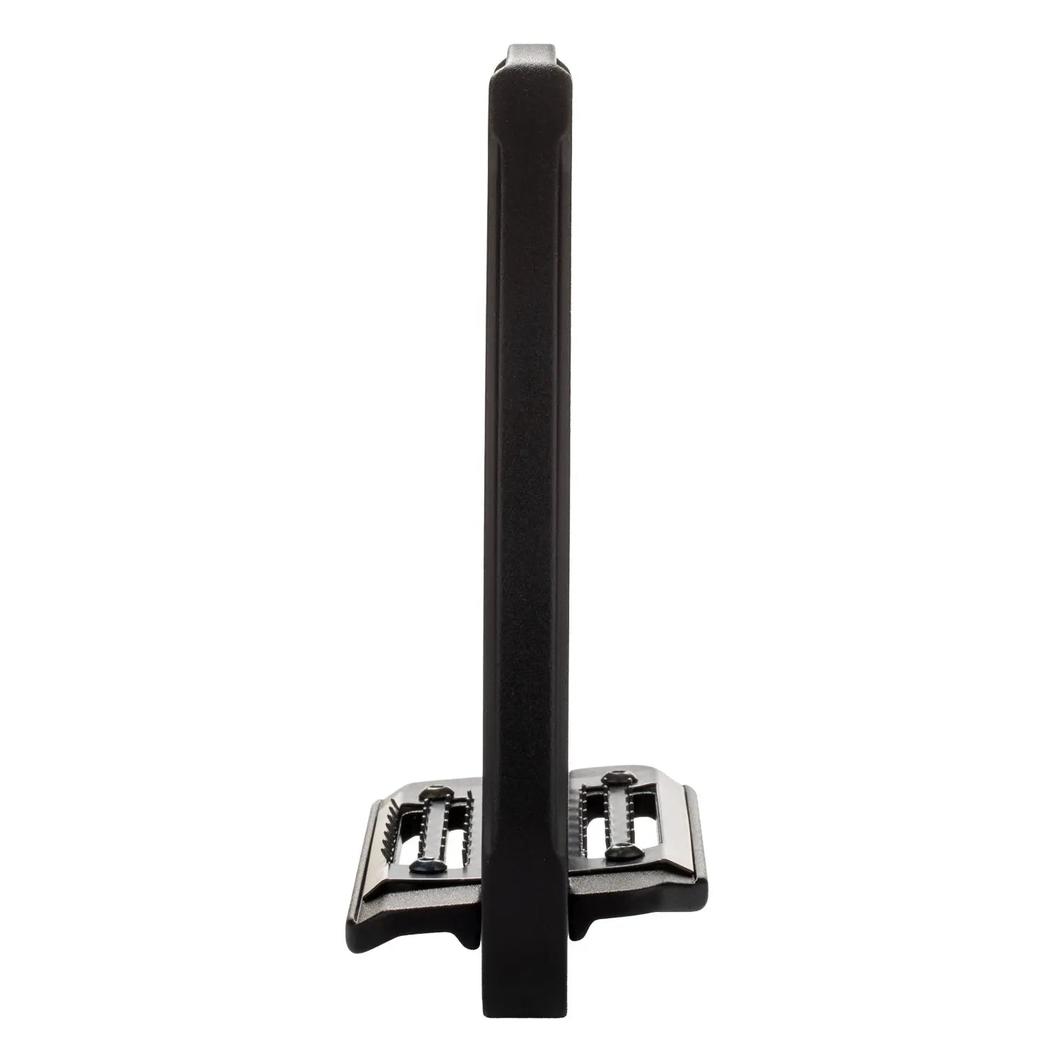 >The strategically placed lock and release mechanism prevents accidental slipping. Pin and internal components are made of stainless steel. The tread is inclined at 5° and the footbed is equipped with Grip System. The stirrups are light weight (519 g) and feature a shot peening surface treatment.
