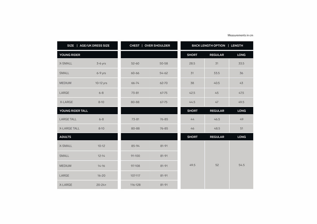 Body protectors are designed to absorb impact and reduce the risk of injury in the event of a fall or collision thus reducing the risk of bruising and rib fracture. BETA Level 3 (2018) is considered appropriate for general riding, competitions including eventing and working with horses. Most riding schools will require riders to wear a BETA Level 3 (2018) body protector for jumping activities and all establishments will require one is worn when riding cross country. Similarly to a riding hat, achieving the correct fit is essential for comfort and performance.