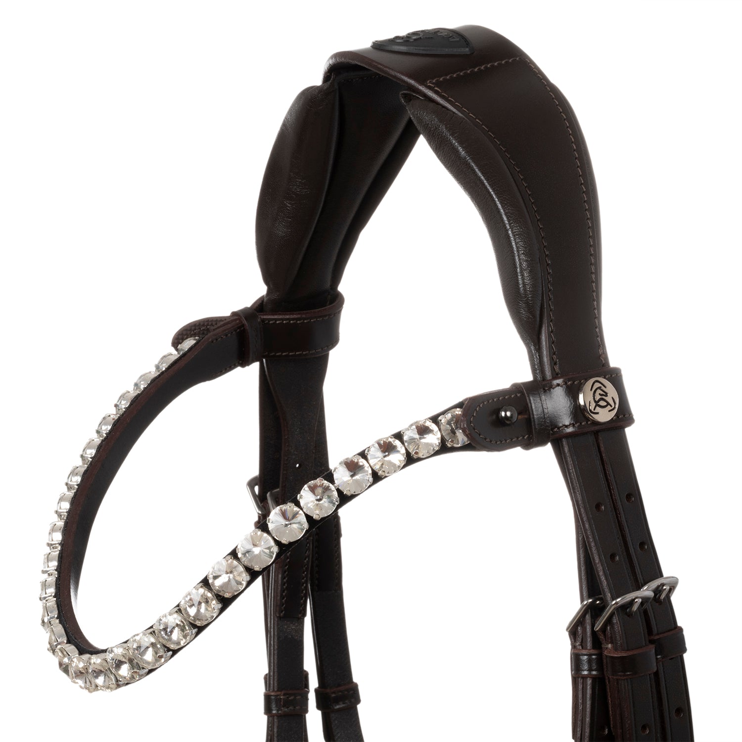 >The browband and noseband are padded with latex and feature elegant black or white piping, giving the bridle a refined and distinctive design. These details give the Ophelia bridle a touch of elegance.