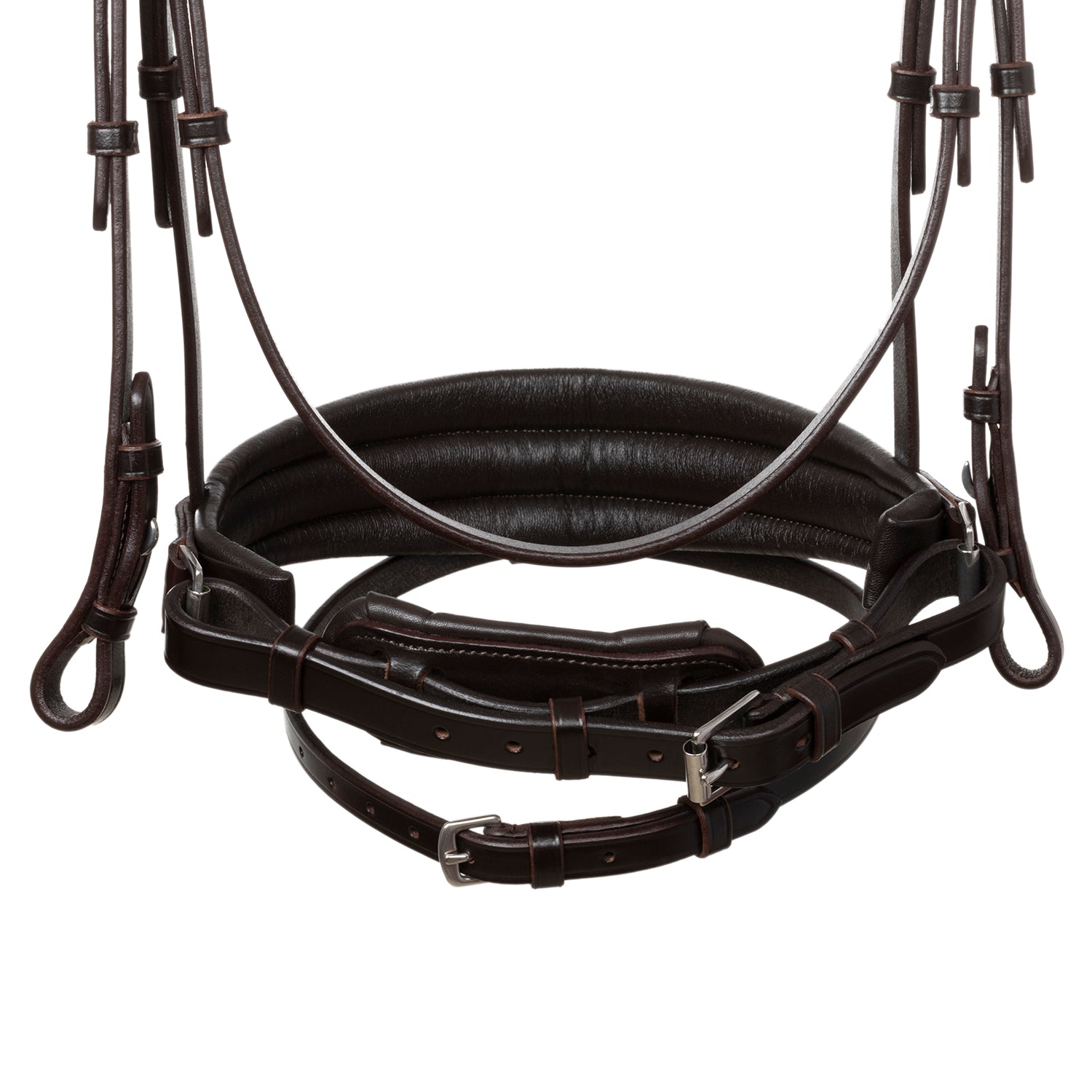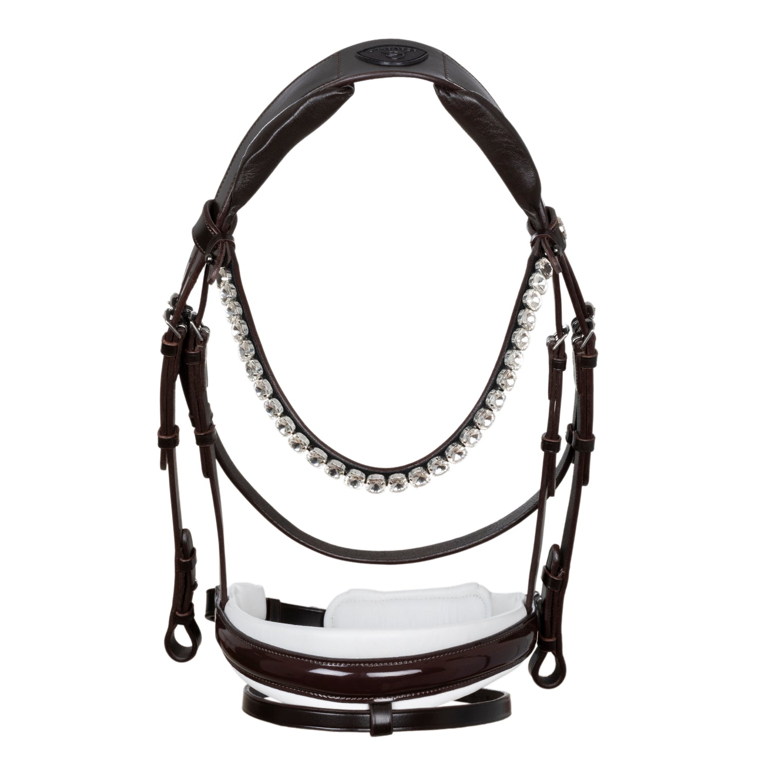 >The shaped anatomical headpiece is designed to reduce pressure on the horse’s skull, ensuring superior comfort without interfering with the horse’s delicate ears.
