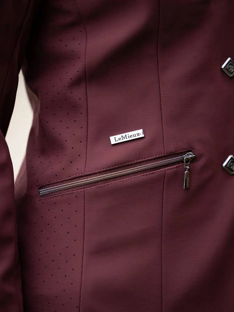 Our signature LeMieux premium show jacket is scaled to fit young riders for competition-level performance and style. Perforated side vents are lined with performance air mesh for comfort and breathability. With sophisticated crystal details on the collar, back belt and split tail tips, it's sure to impress. Meanwhile, a durable front zip and distinctive LeMieux branded poppers will keep things secure no matter what. Generous side zip pockets allow you to stash treats without disrupting the elegant line of the jacket. Subtle LeMieux branded finishing touches grace the hip and arm.
