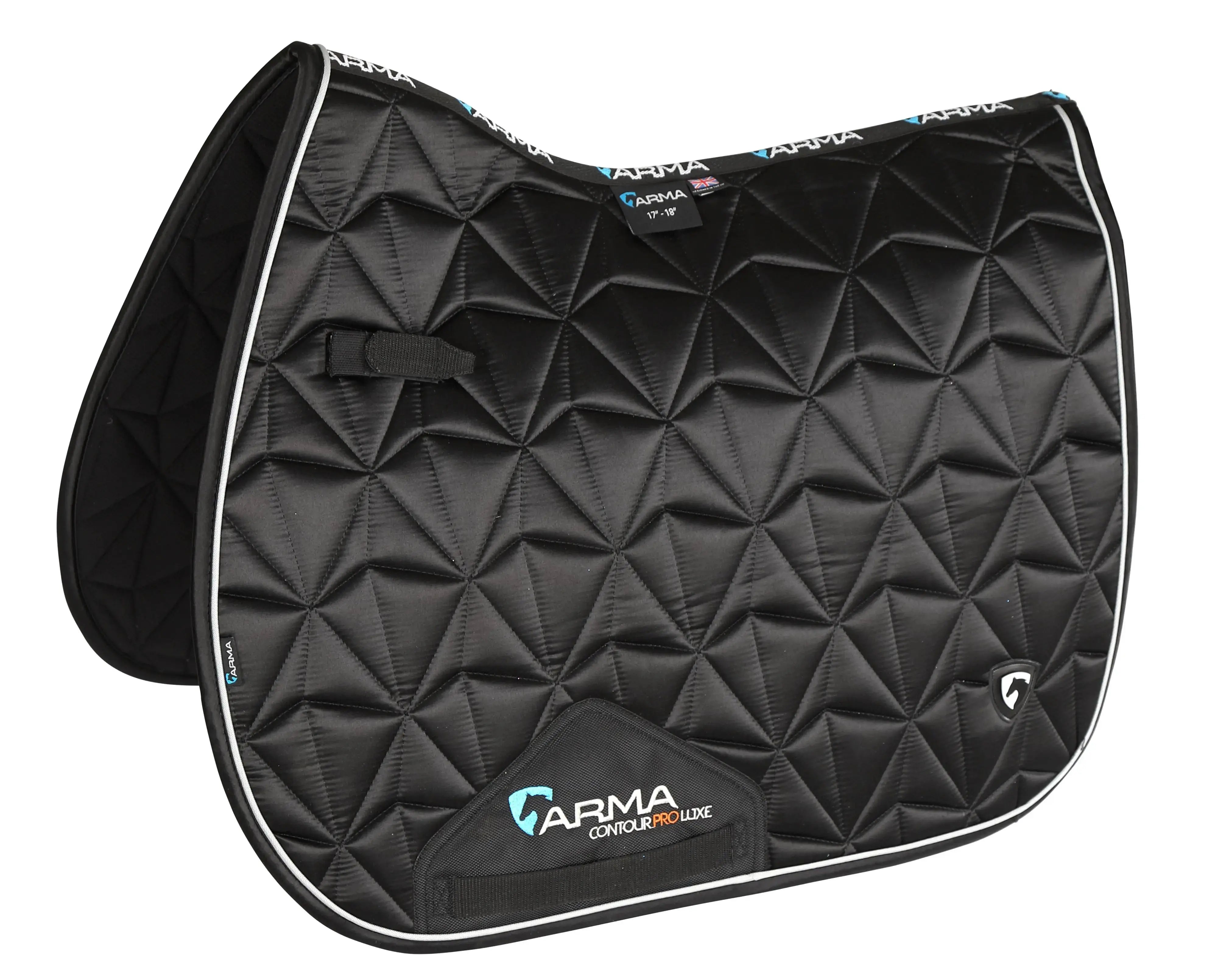 The ARMA luxe gloss saddlecloths feature contrasting colour binding and detailed quilt stitching.