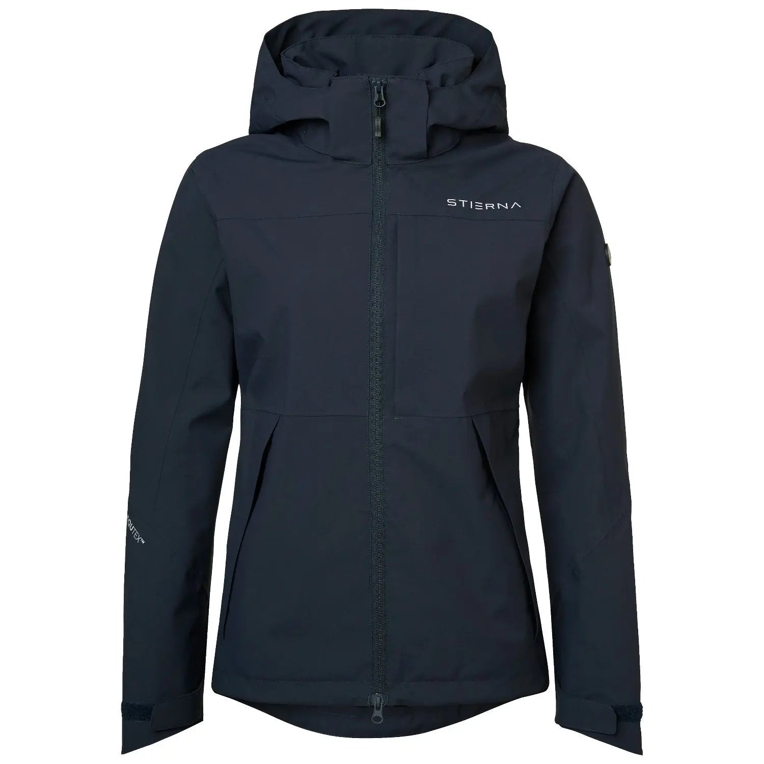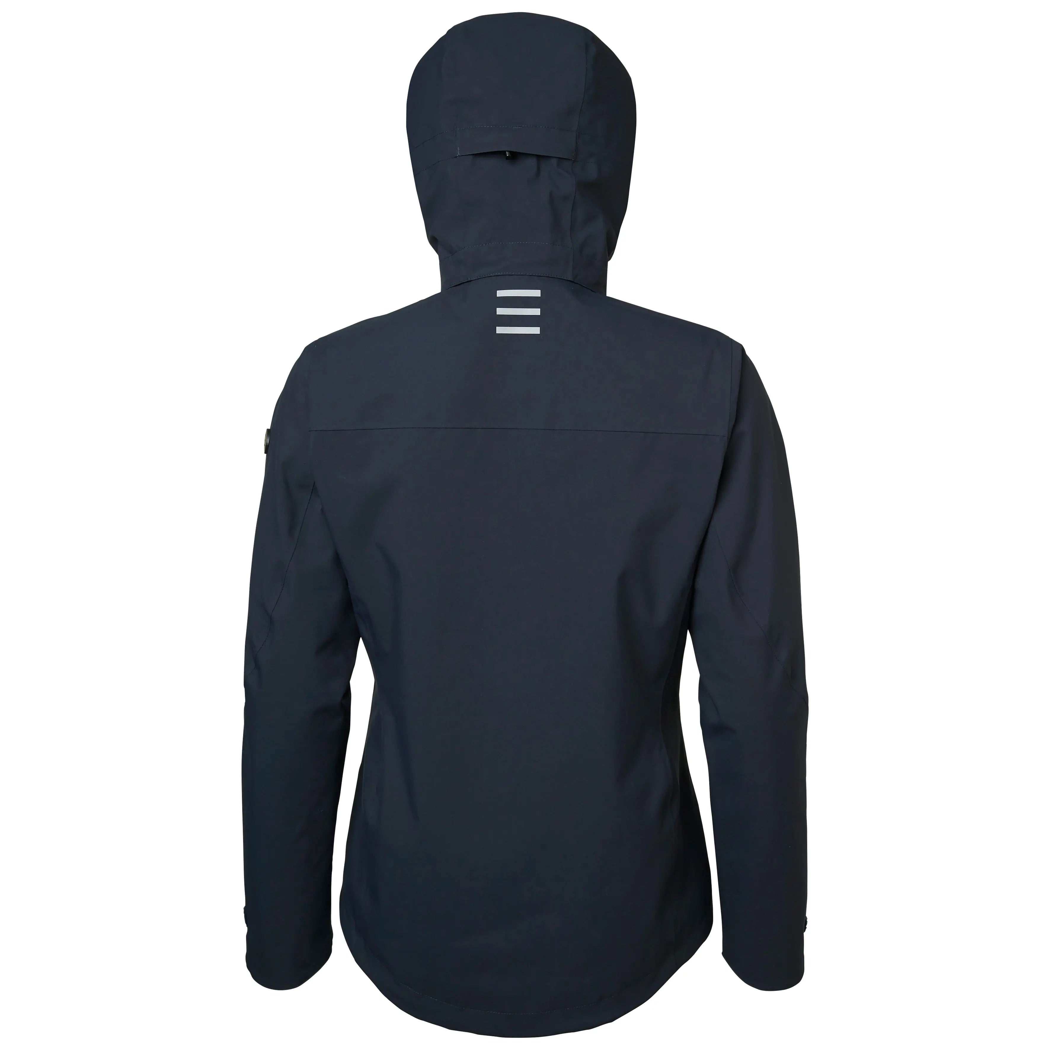 The Stierna Storm Ladies Waterproof Navy Rain Coat is a stylish, technical, fully protective waterproof and windproof jacket with fully taped seams to protect you against the elements. Designed with environmental consideration, this coat is made from recycled EquTex material: this stretch 2-layer polyester fabric features a waterproof and breathable membrane. The outer fabric is treated with eco-friendly, flurocarbon-free DWR.