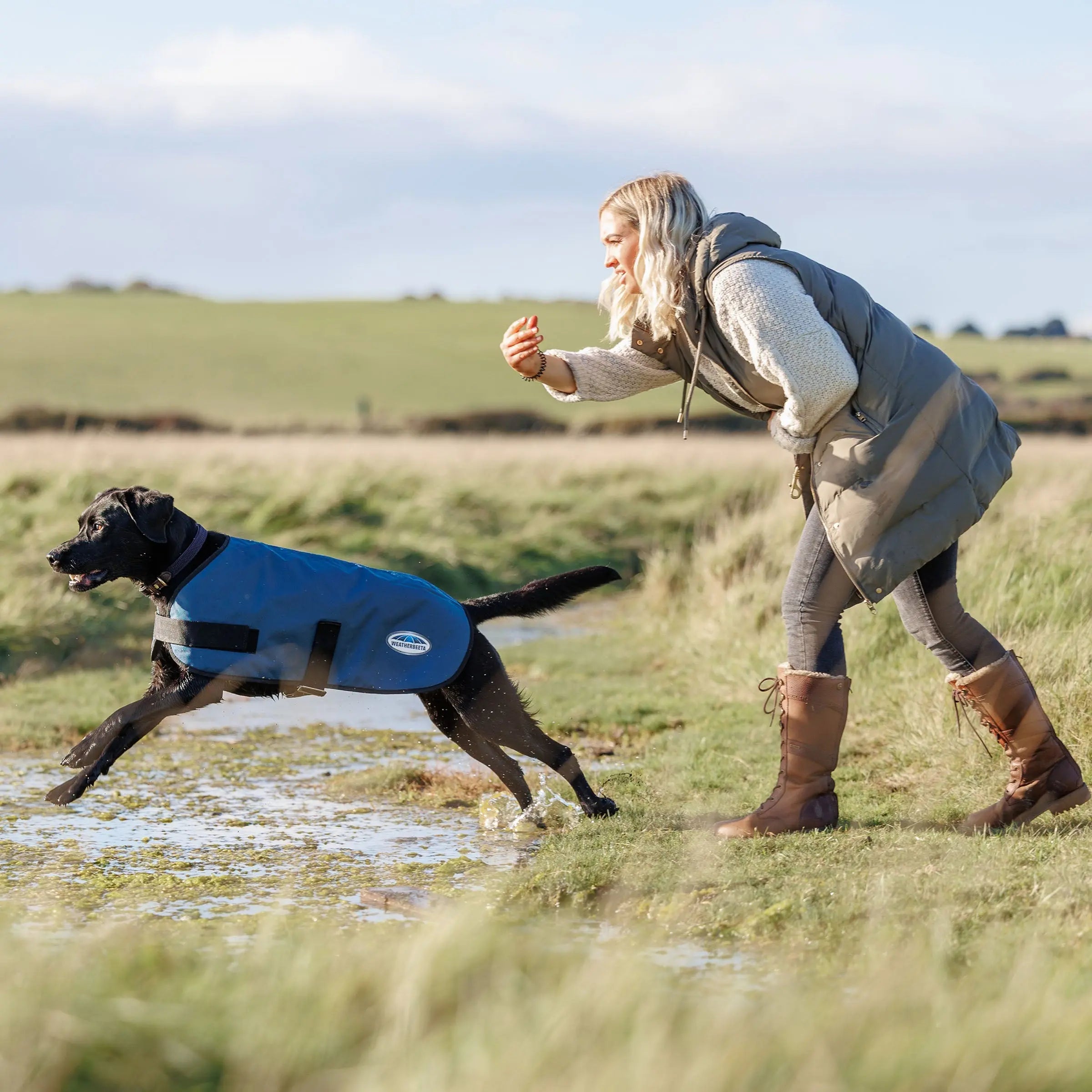 Strong, high quality, classic style and great value dog coat. The WeatherBeeta ComFiTec Classic Dog Coat is made so your dog can go and explore any time. This jacket for dogs has a durable and tough waterproof and breathable 600 denier outer, with a polyester lining and 100g of polyfill this dog jacket will keep your dog protected. Featuring adjustable touch tape chest and belly closures for a secure and customisable fit.