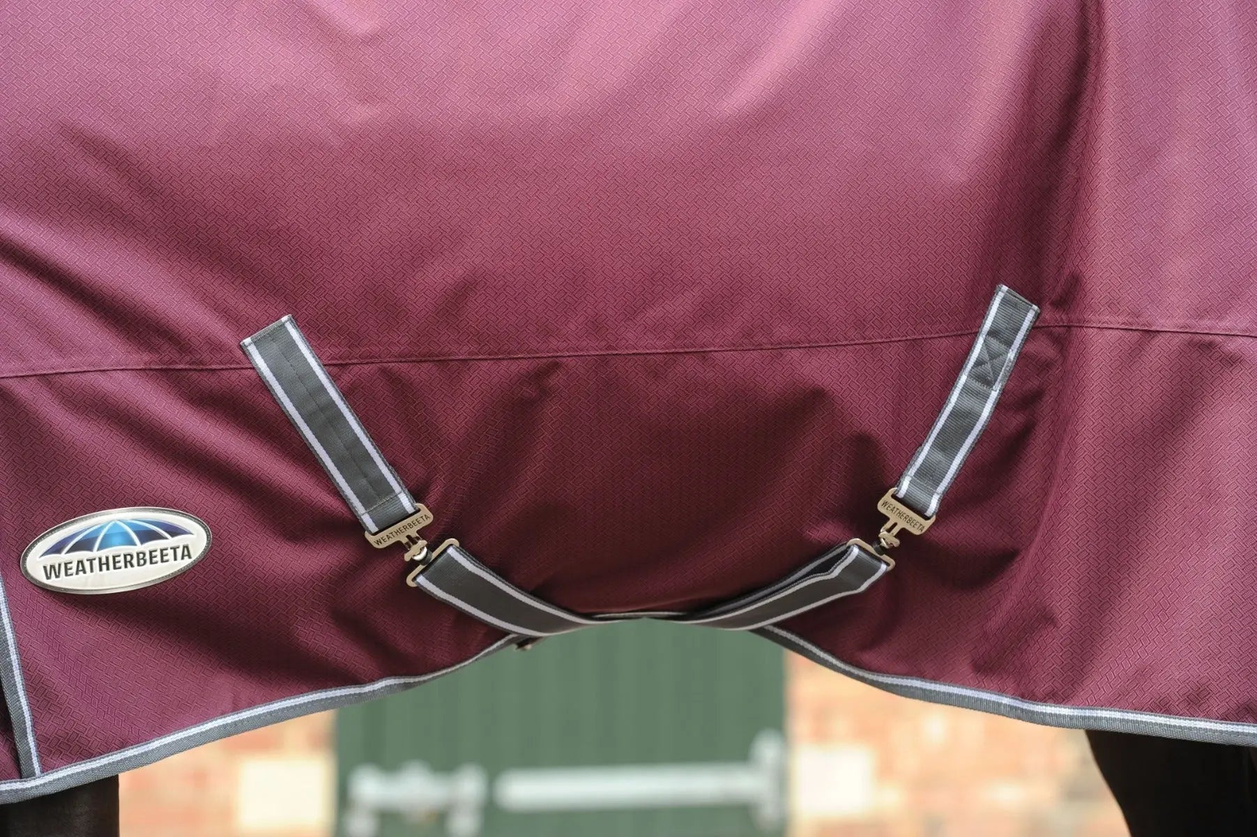 The WeatherBeeta ComFiTec Plus Dynamic 100g Lightweight Detach-A-Neck Turnout Rug features 100g of fill and with its integrated neck is a great choice for protection in cooler, wet conditions.