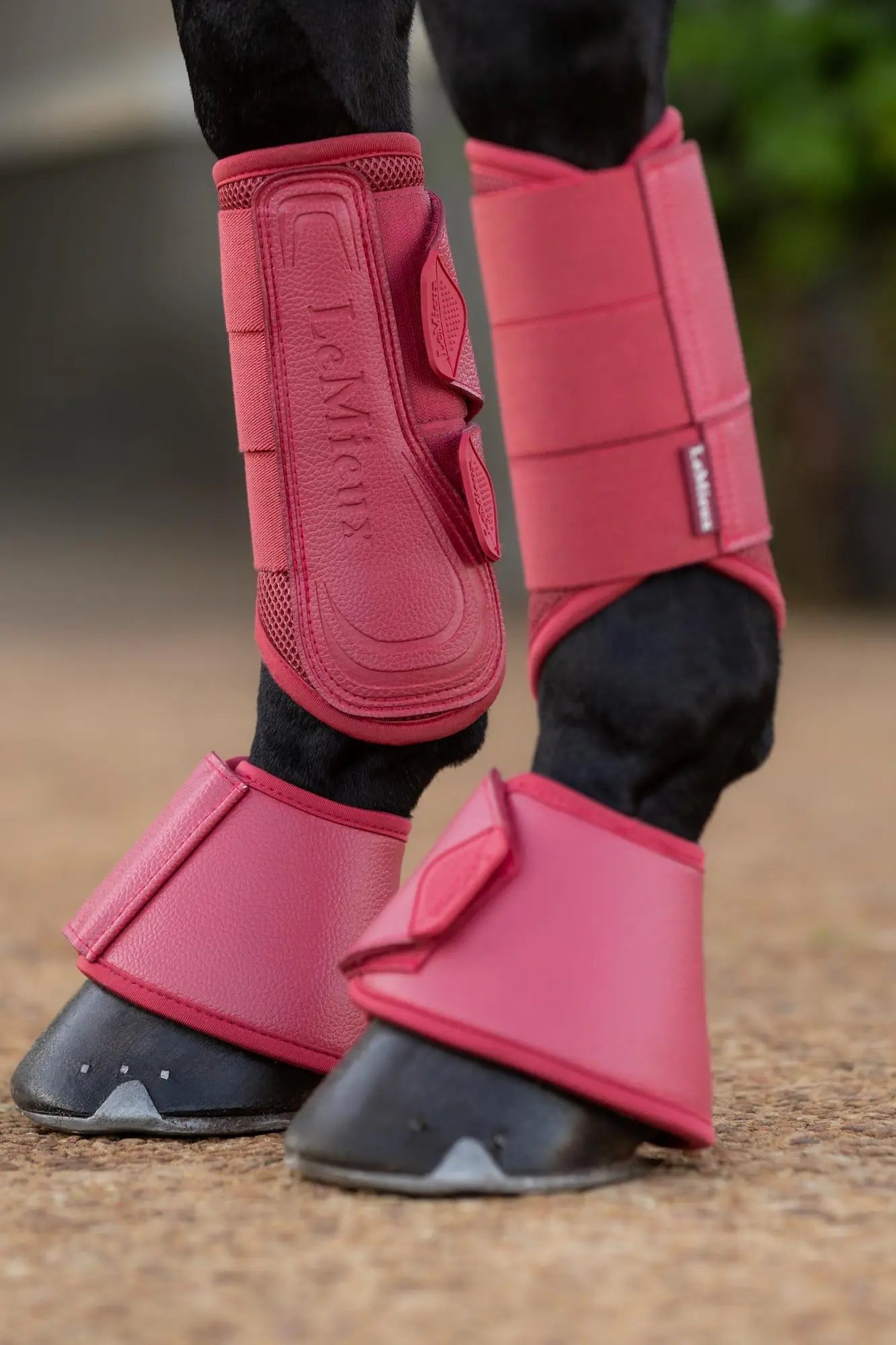 Designed by our colour experts to mixy and match with our Arika Mesh Brushing Boots, our new range of colourful over reach boots goes with any colour combination - you simply can't put a foot wrong! Not only stylish but practical too, these boots boast a bouncy neoprene liner with a tough, durable PU leather outer and a super soft anti-rub top bound edge. They're ideal for schooling, warm-up and travelling. Adjustable, quick and easy to remove with a new double lock feature for added security. But since the colours are so nice and bright, you'll easily spot one if it does get dislodged.