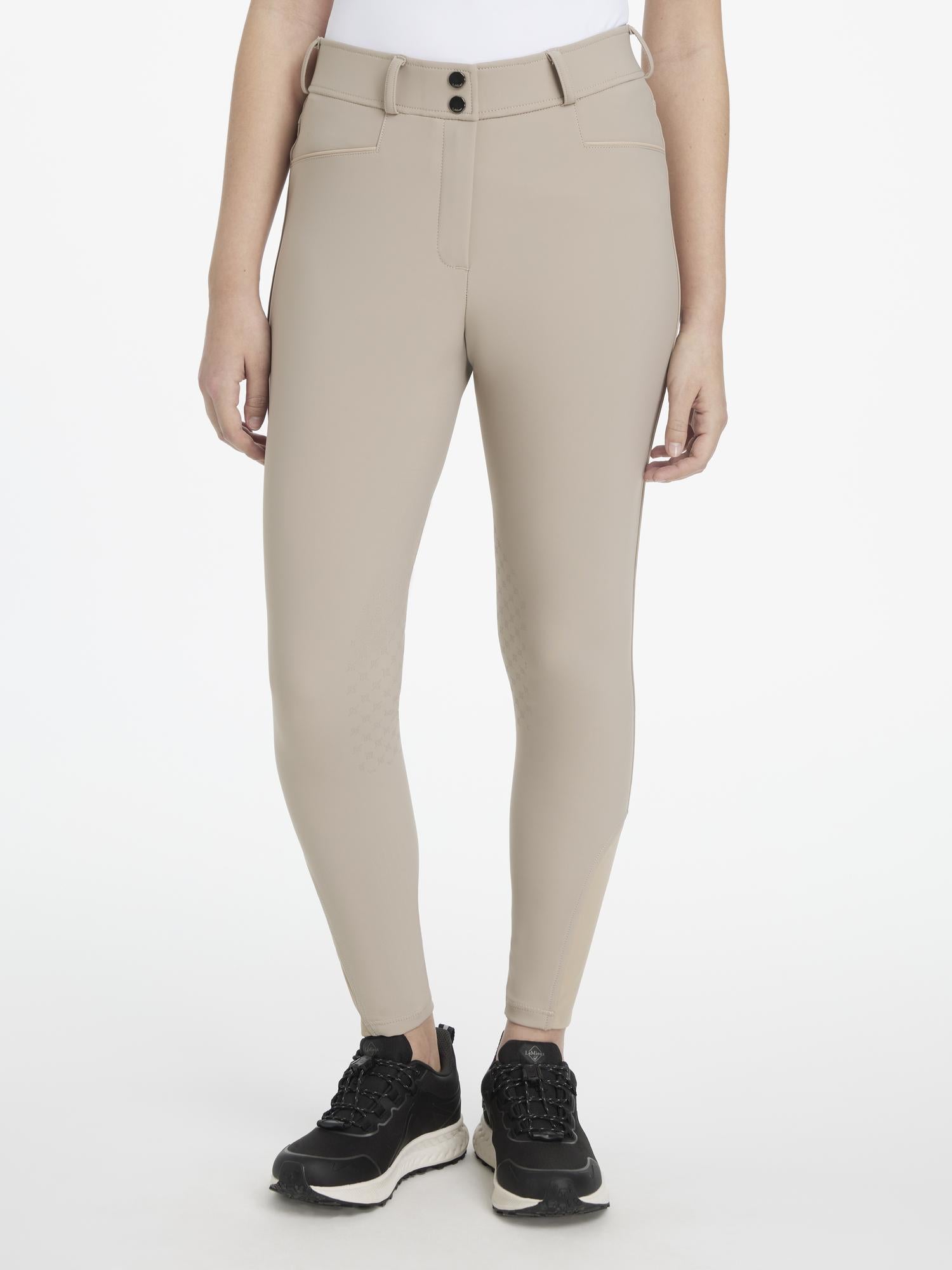 Smart square front pockets with tonal reflective details, a seamless-feel design, and a soft and flexible four-way adaptive stretch keep you moving in comfort. Belt loops, faux back pockets, and a fly front are classic breech styling details. Offered in full seat and knee grip styles, they deliver stability and security in the saddle, according to your preference.