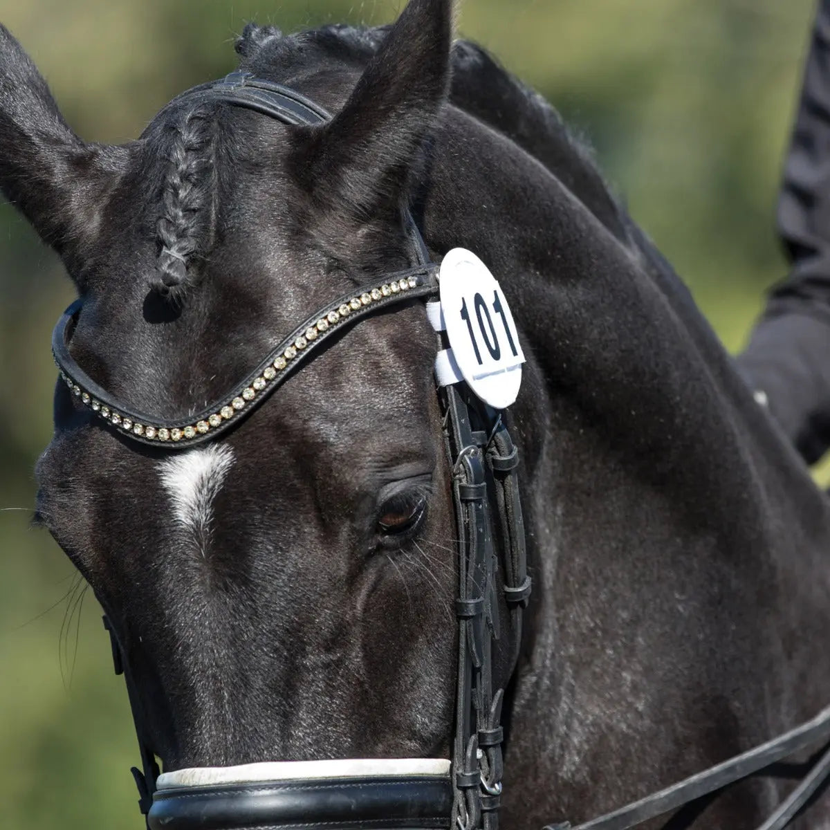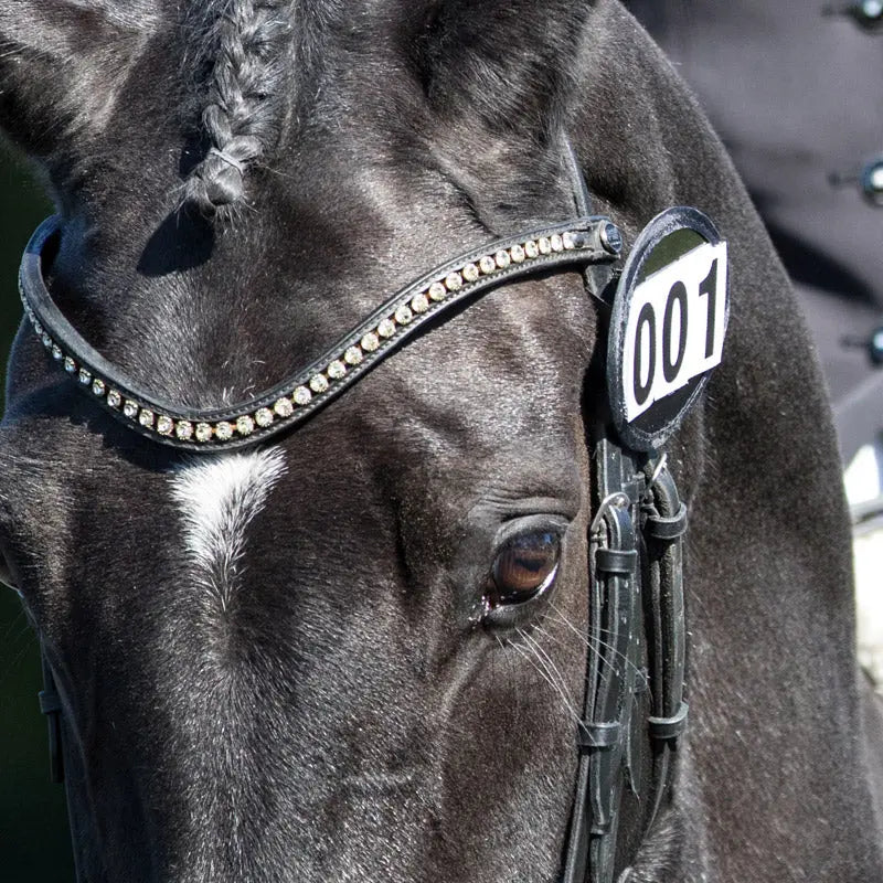 The Equetech Bridle Competition Numbers are specifically designed for ease of use and simplicity, no fiddly, clumsy numbers that can get easily lost or broken. Designed with Velcro attachments to attach to your bridle, which can also be changed quickly and efficiently. Sold in singles. Available in Black patent, White.