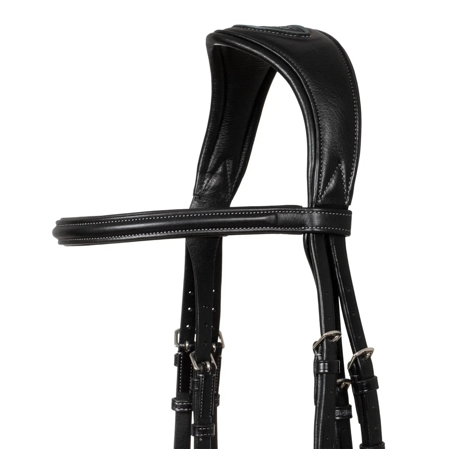 >The anatomical headpiece is designed to relieve pressure in the horse's skull area, ensuring a comfortable and unrestrictive fit.