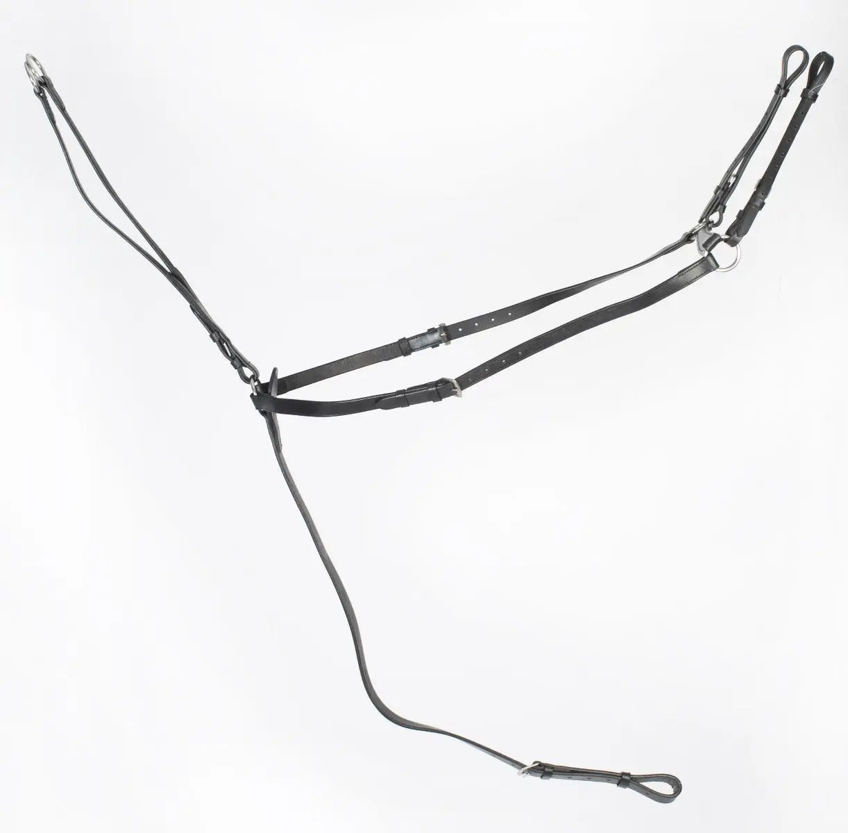 This leather breastplate with stainless steel fittings and adjustable martingale attachements is ideal for hunting, cross country or everyday schooling.