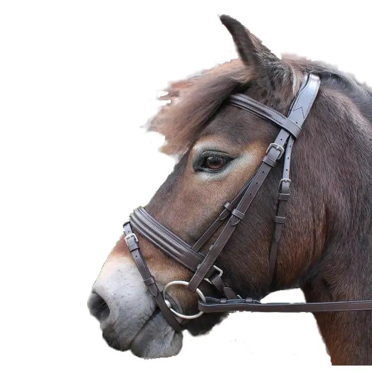 The double raised bridle features a removeable flash strap with an anatomical headpiece, complete with rubber reins.