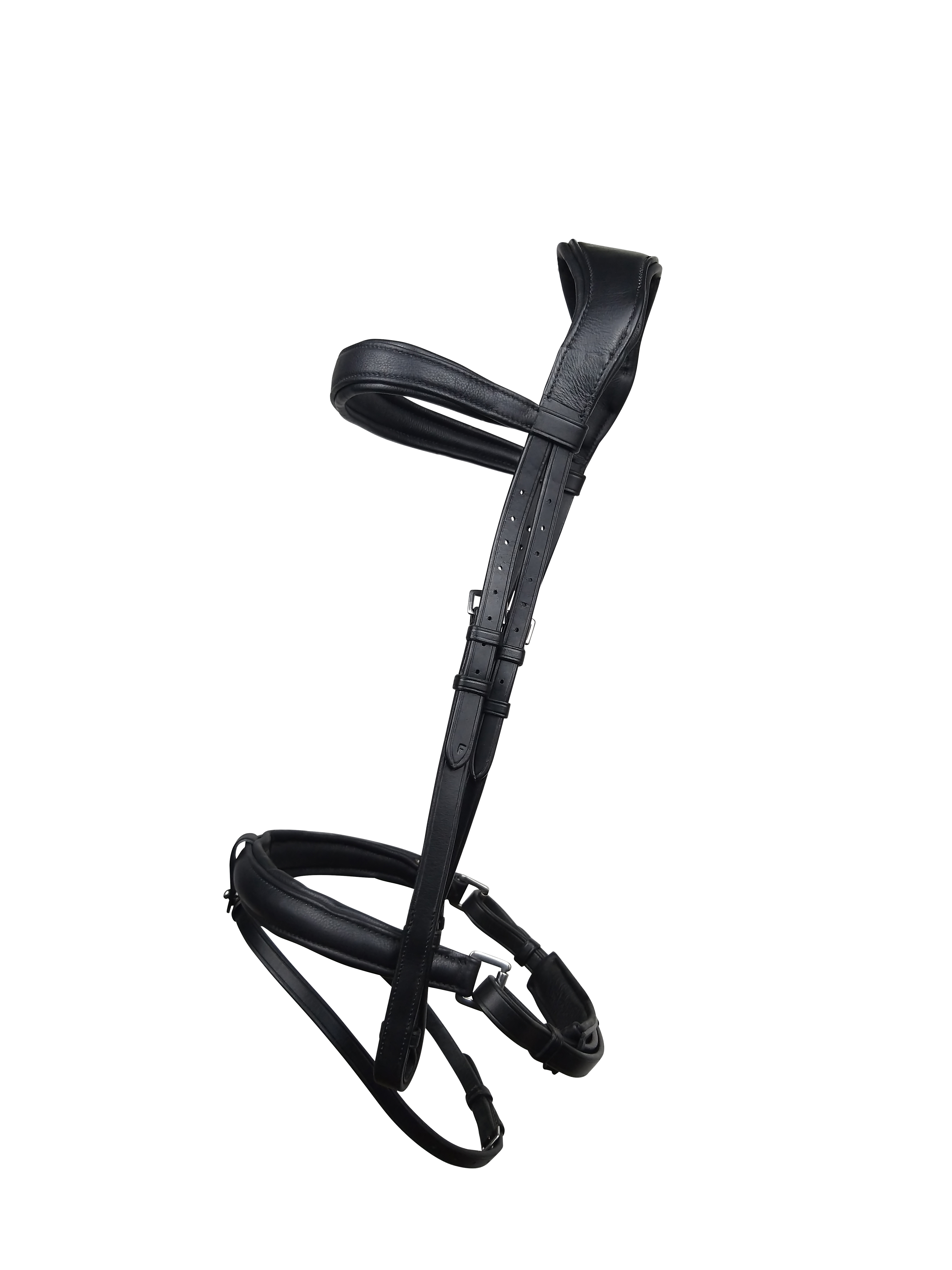 The headpiece of this bridles features a suspended throatlash to remove jaw restriction allowing it to sit in a more natural position.
