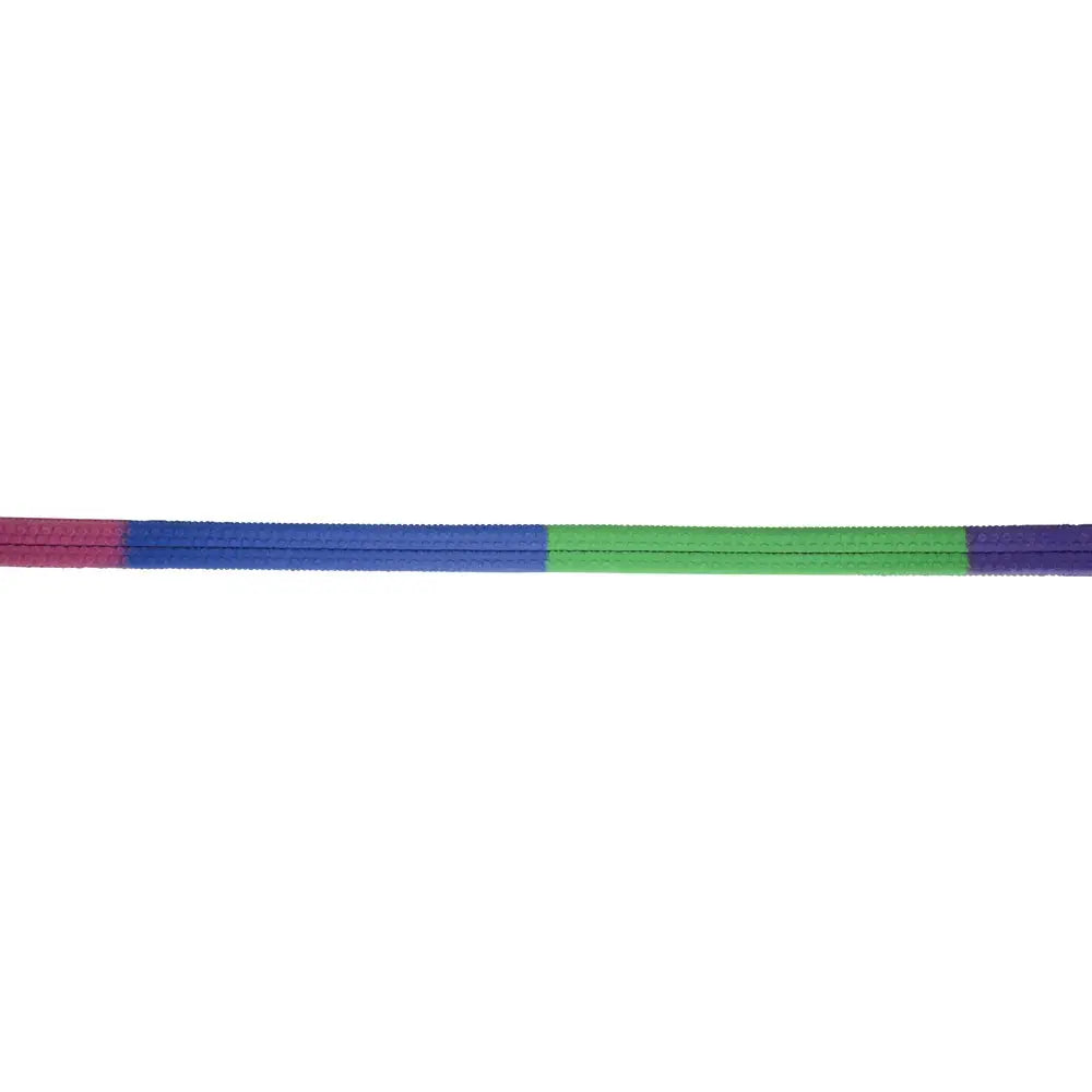 These colourful rubber grip reins are a useful guide for riders of all ages. With four different coloured sections on either rein, it will help the rider become more aware of their hand position and the contact in their horse's mouth. Comes in two different lengths and width with billet hook fastening.