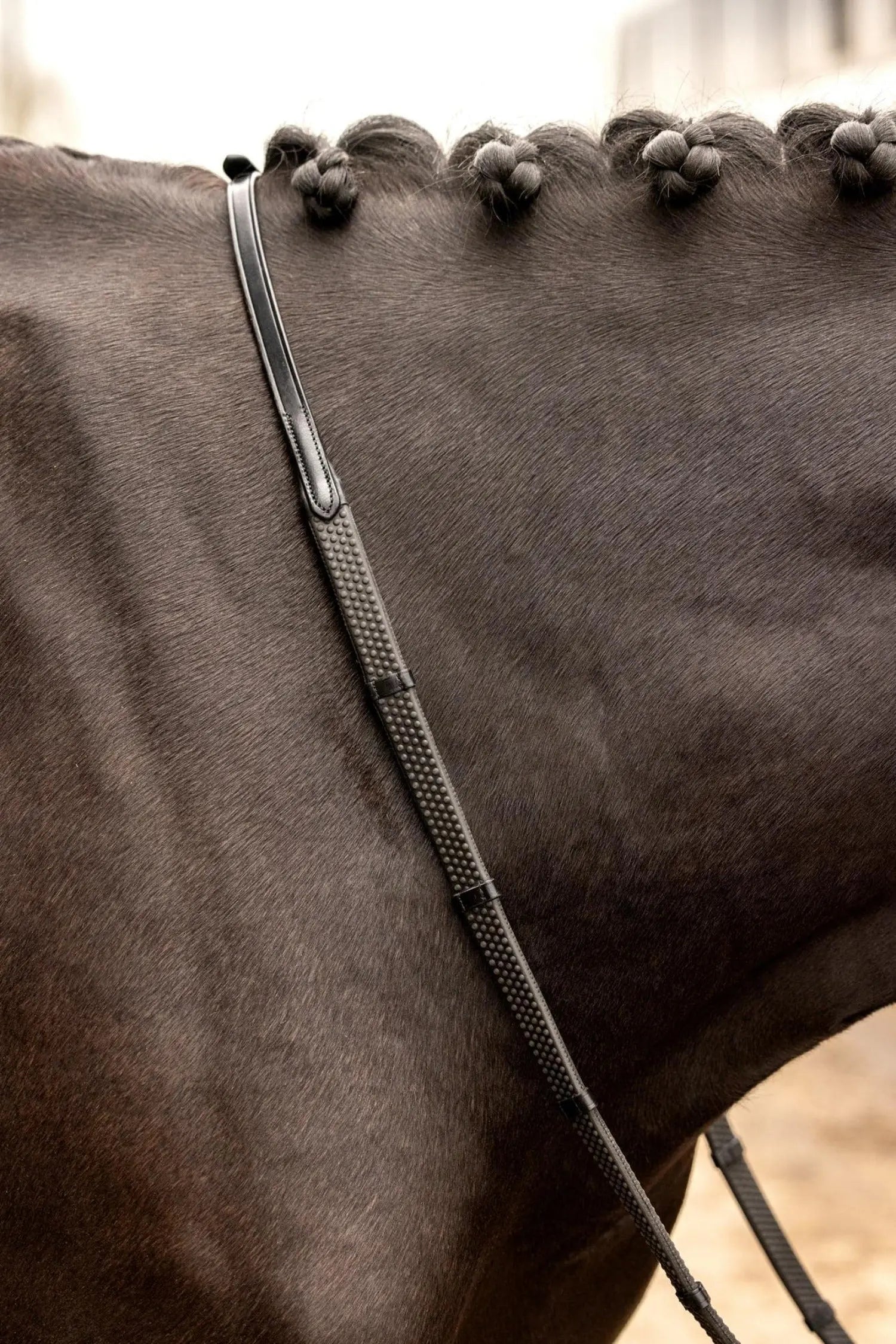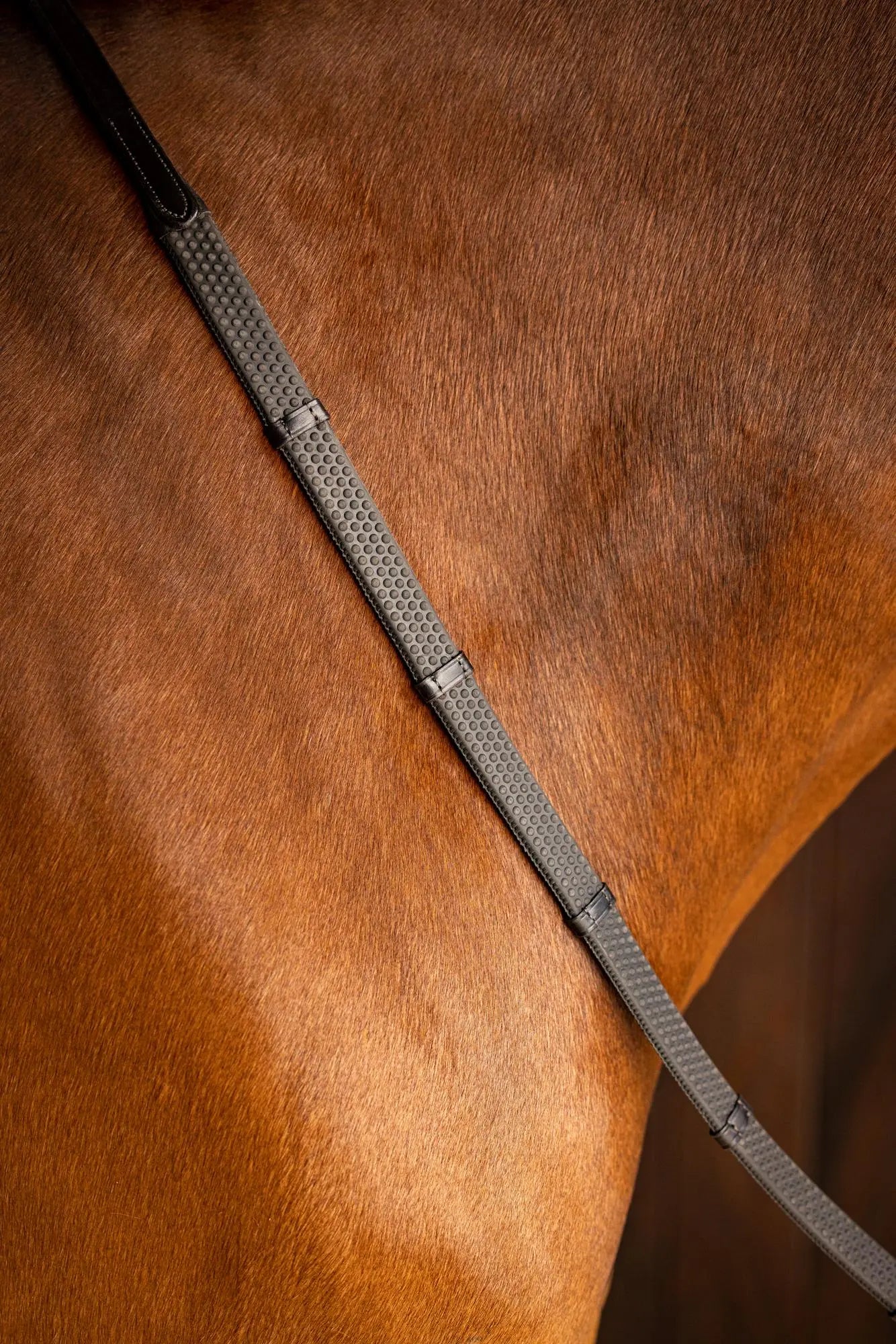 Enhancing grip and control, the raised pimple texture on the reins provides additional traction, ensuring a secure hold even in challenging conditions.