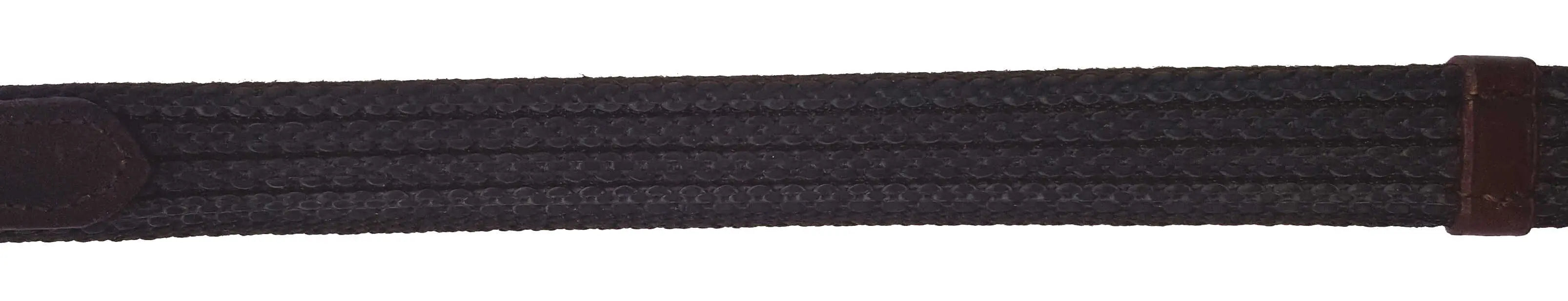 - Super grip: Leather rein stops, non-slip rubber hand sections. - Flexible: Made of polyester webbing. DETAILS: - Barley grain hooks. - Stainless steel buckles.
