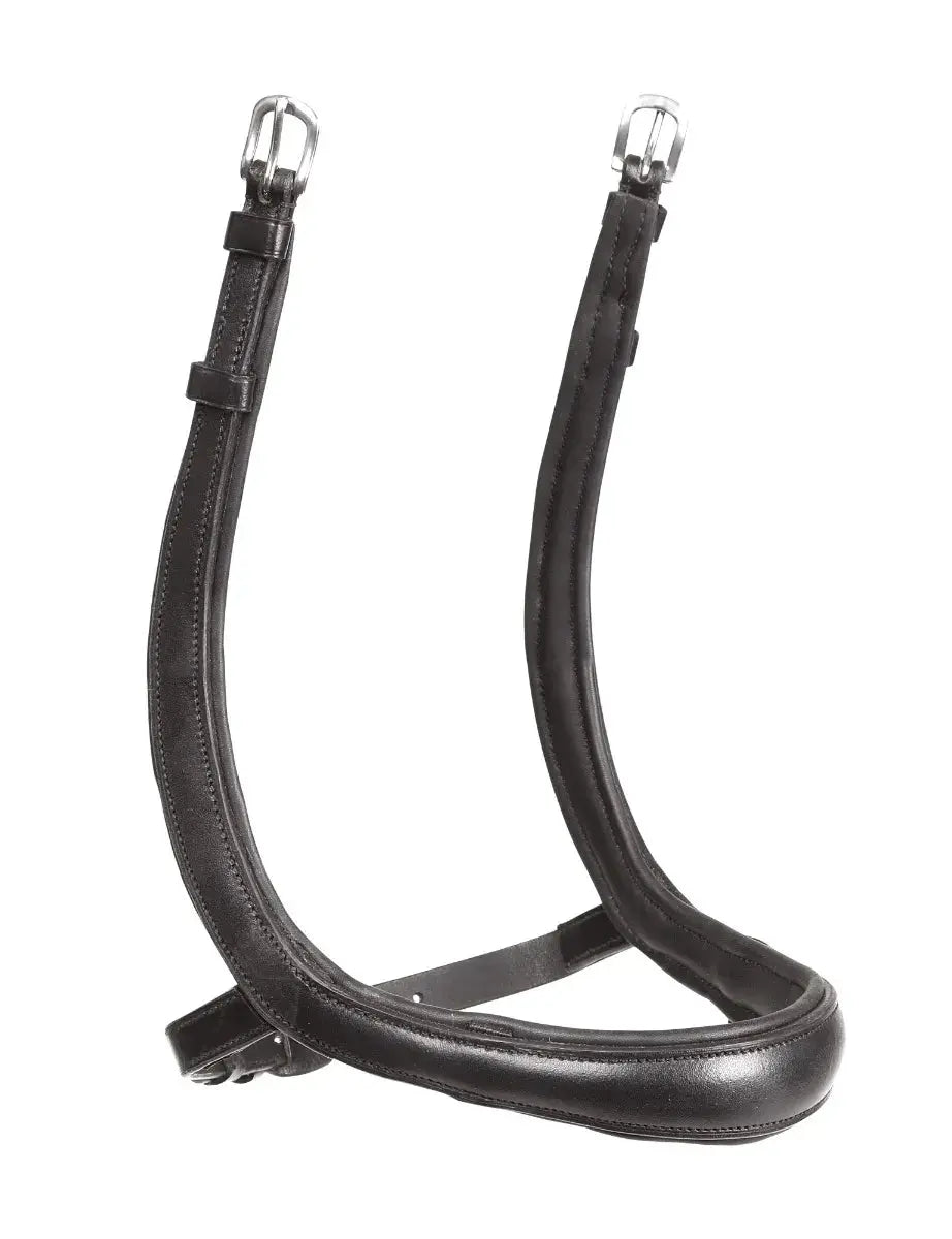 The wide padded noseband creates a greater spread of pressure, the inverted V noseband shaping avoids obstruction of the molars for a less restricted feeling.