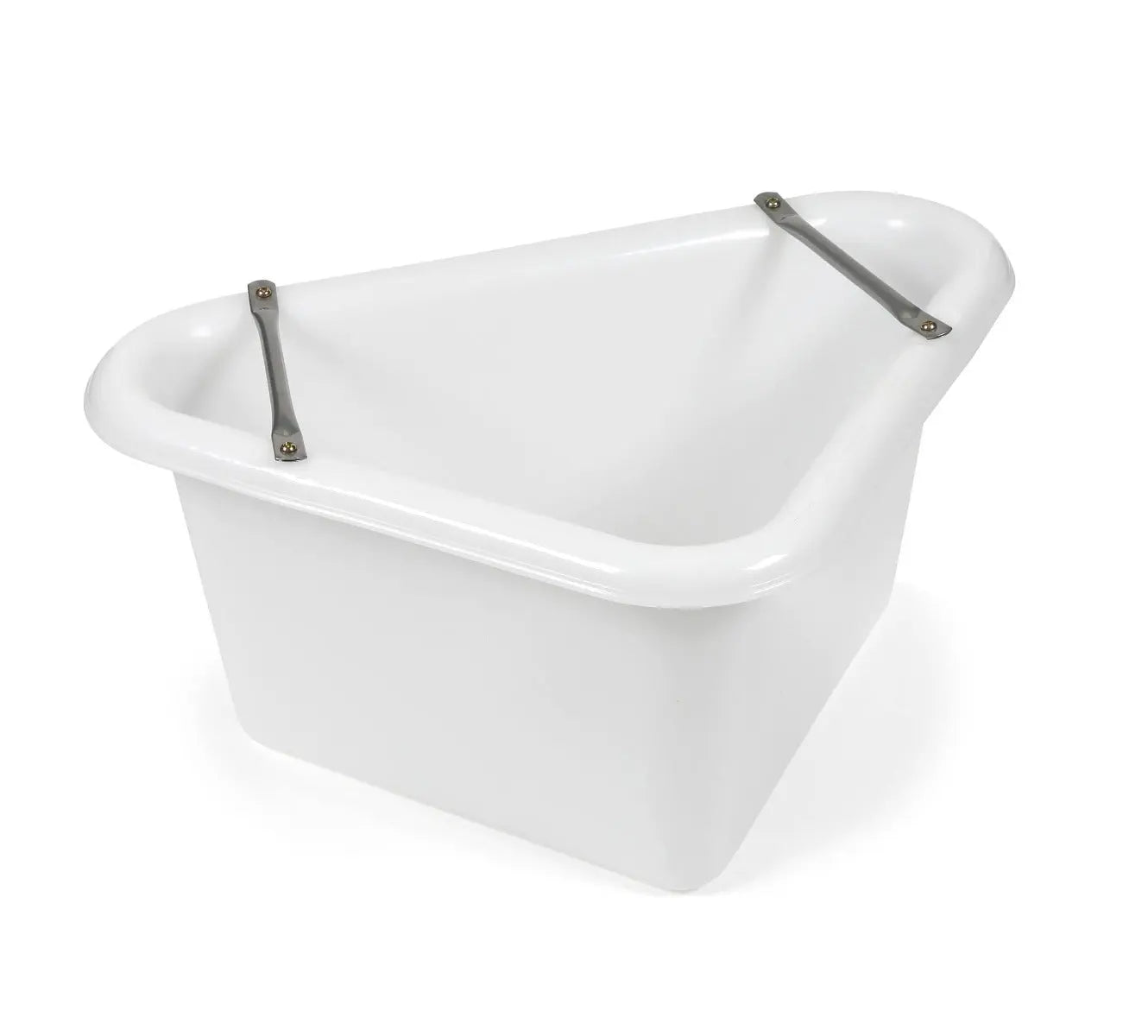 The Shires Corner Manger is a sturdy corner bucket ideal for fitting into a corner manger frame (supplied seperately) for feeding in the stable. Using this manger with the frame allows you to remove the bucket for easy cleaning. Complete with anti-waste bars which double up as handles. This corner manger is durable and frost-proof.