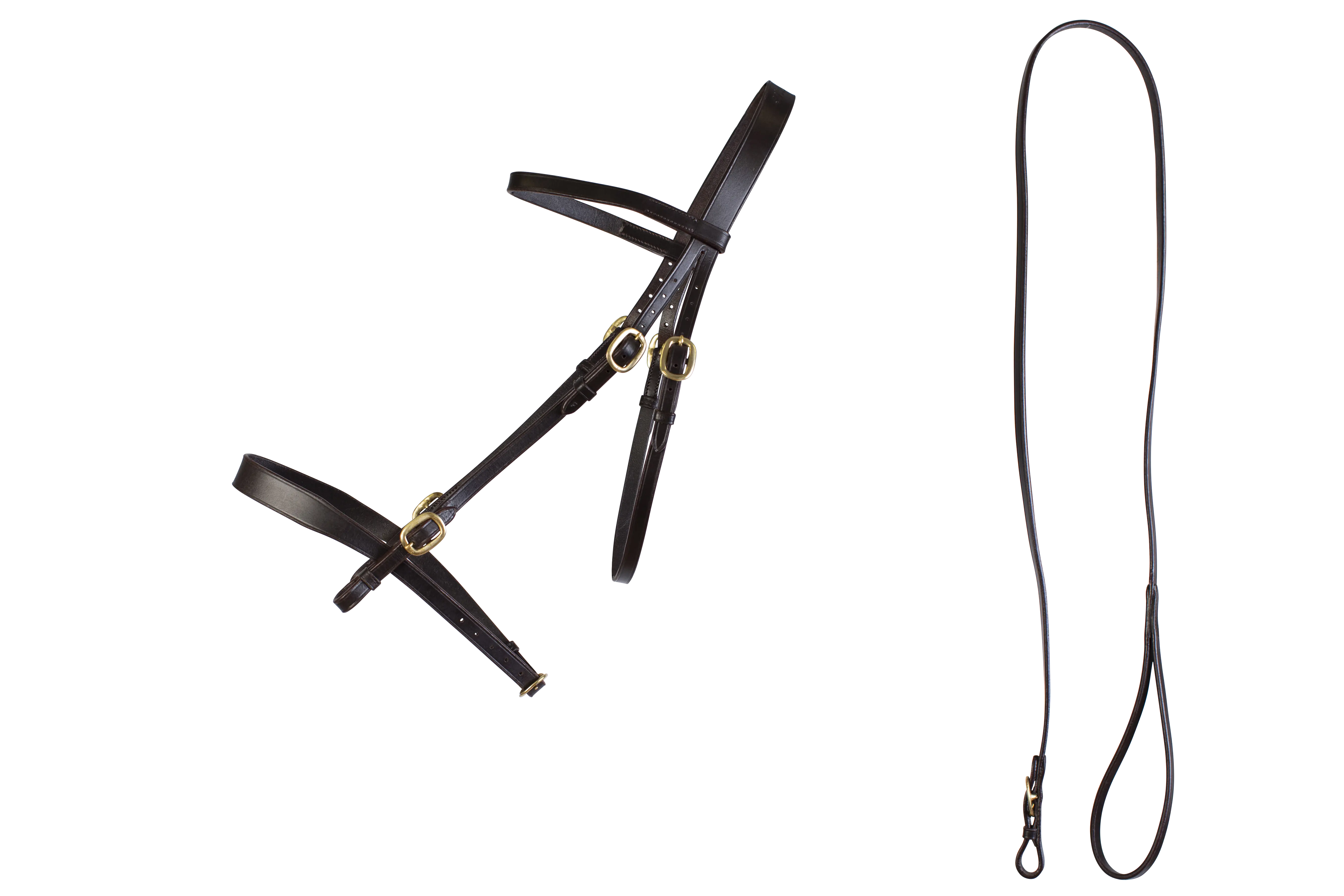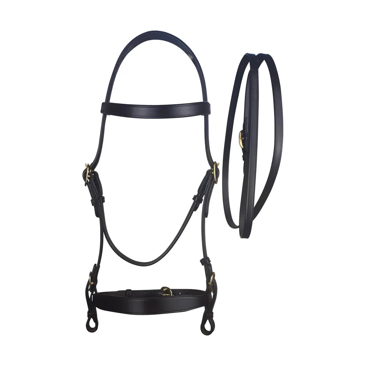 Stunning in hand bridle with brass fittings features a lightly raised browband for classic showring style.
