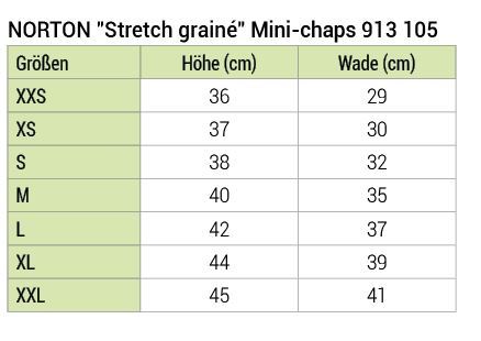 These Norton synthetic half-chaps are made of polyurethane with a grainy leather look. Streamline effect thanks to stretch "Micro Touch" elastane fabric lining. Elasticated foot strap and rear YKK zip secured with press button leather tab on lower end.