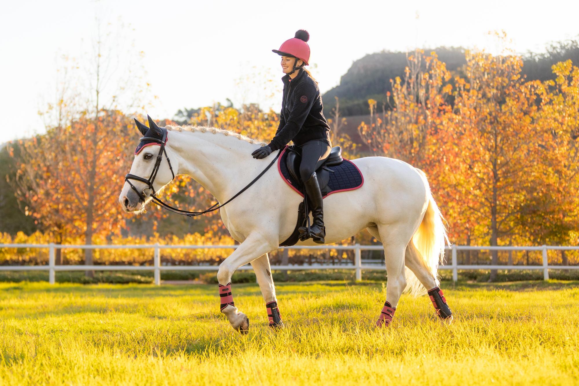 The luxurious yet easy-care suede-effect upper is perfect for everyday occasions. It is finished with smart LeMieux-branded spine tape, while contoured friction-free binding prevents misshaping. Our signature breathable natural bamboo blend lining absorbs and controls sweat under the saddle and is naturally antistatic, antimicrobial, and quick-drying. It's also beautifully comfortable and secure, minimising friction even on sensitive-skinned horses.