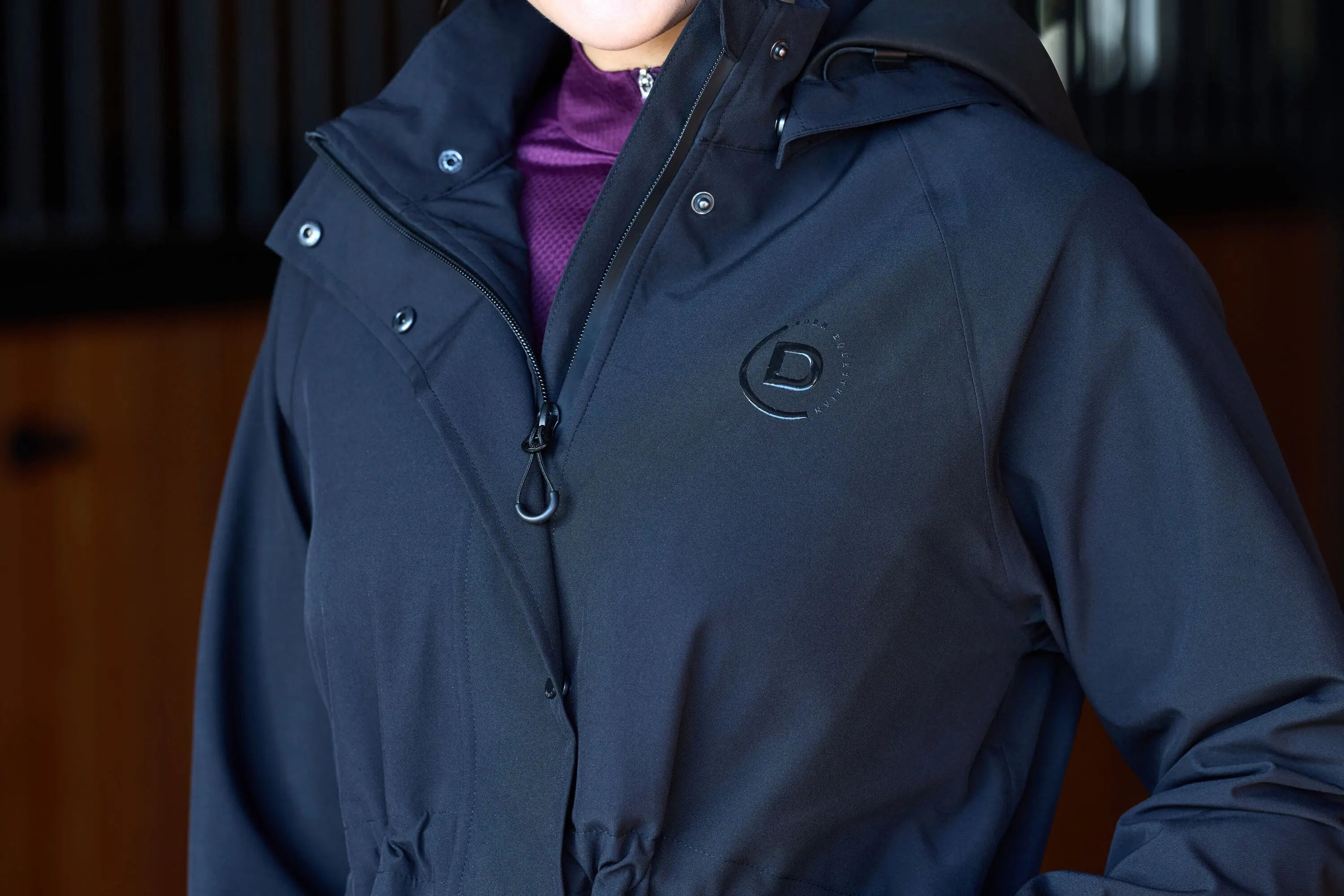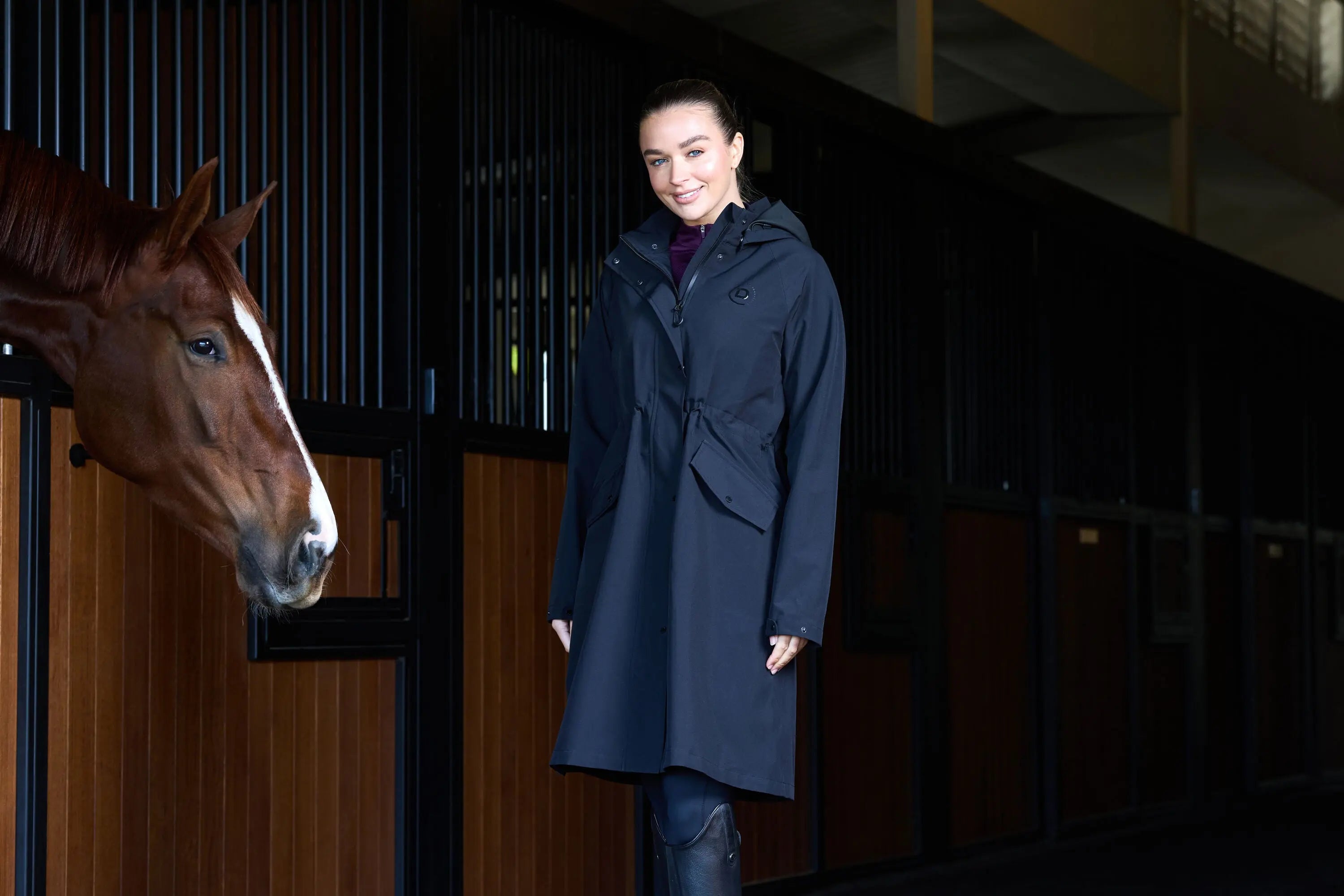 Stay stylish and protected no matter the weather with the Dublin Wet Weather Long Jacket. Designed with horse riders and equestrian enthusiasts in mind, this premium jacket seamlessly combines functionality, comfort, and style. Whether you’re in the saddle, teaching, or offering support on the sidelines, this longline, waterproof jacket is your ultimate companion against the rain. Built with a triple-layer fabric featuring TPU and jersey lining, it offers top-tier waterproofing and breathability, with a 10,000mm waterproof rating and 10,000gsm breathability rating, keeping you dry without compromising comfort. The contoured fit with an elasticated waist ensures a flattering silhouette, while features like the detachable peaked hood, rear gusset, and double-ended zip make it versatile for both active and casual wear.