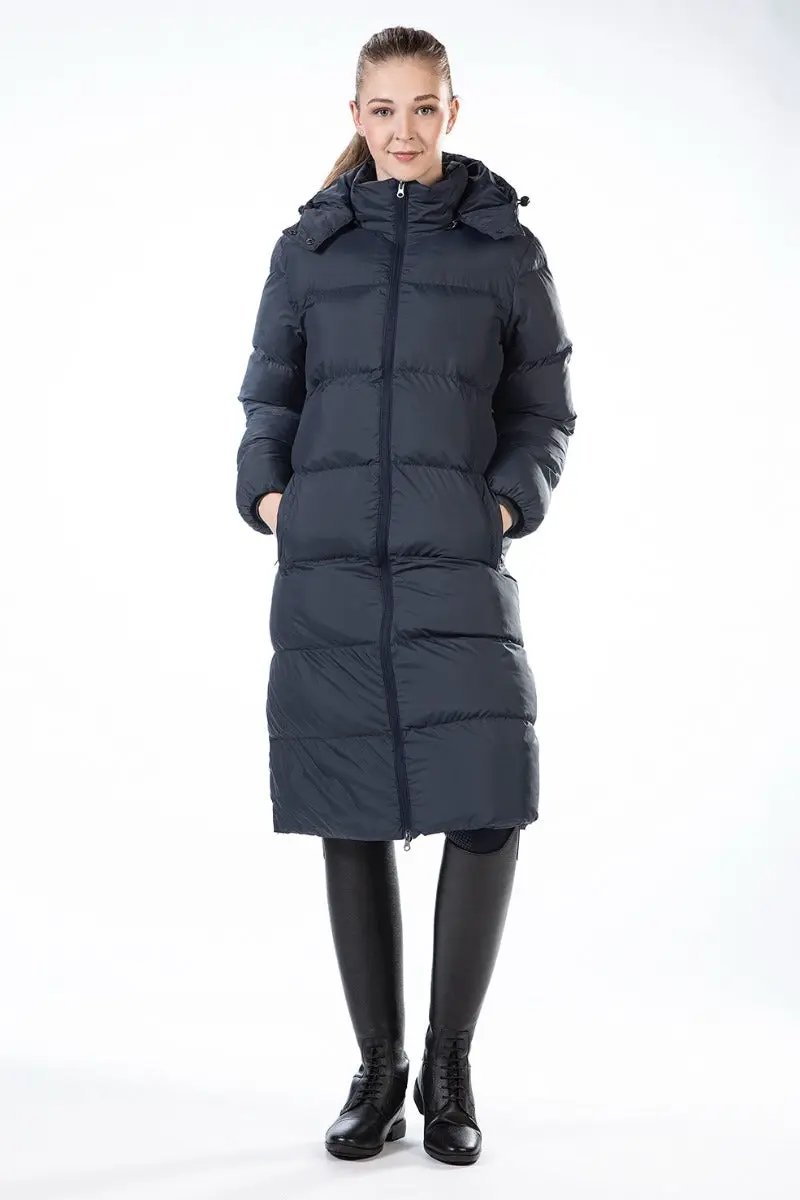 Cuddly and cosy yet so lightweight! This is the HKM Preston, an extra long quilted jacket perfect for keeping you warm during winter cold snaps. With a two-way zip and incorporated back slits, this long coat is a great choice for riding in. Internal leg straps fix around the thighs to keep this coat secure and stopping it from flapping in any windy weather and as you ride. Complete with zipped outer pockets and a detachable hood.