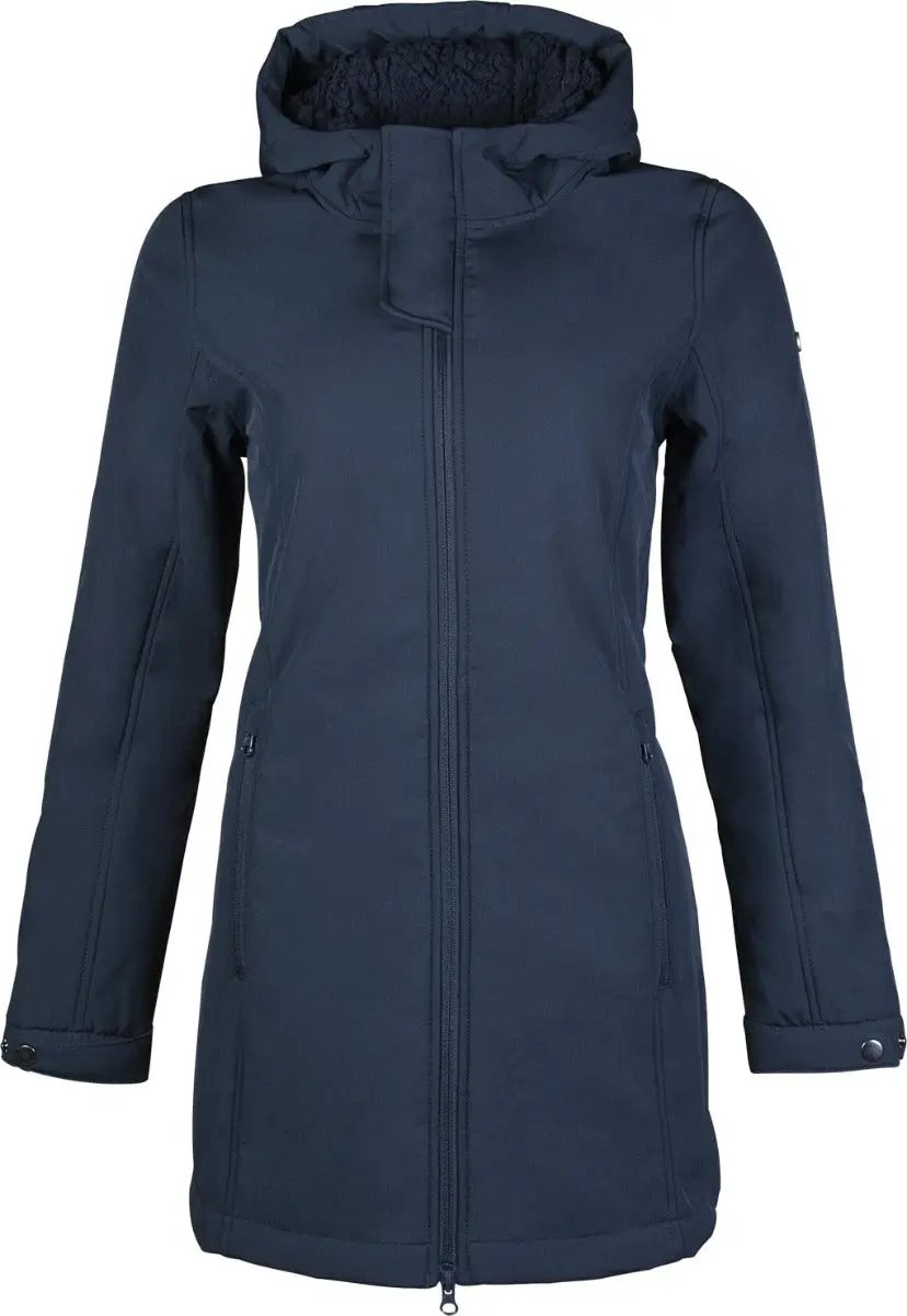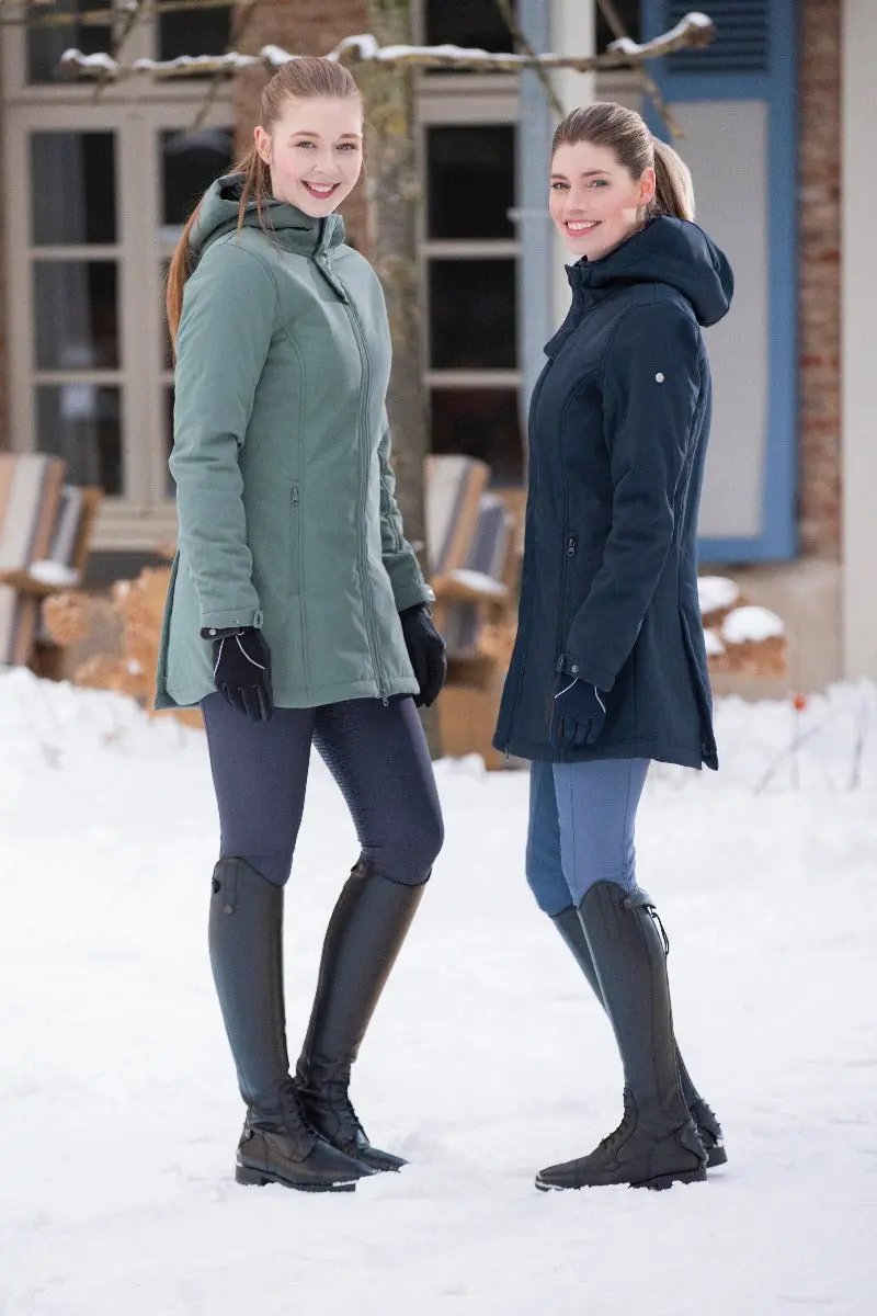 The HKM York Softshell Parka is a highly water resistant riding coat, fitting at a slightly longer length for a great level of protection. A 2-way front zip and rear back slits allow for comfort and freedom to move in the saddle. Fashionable and flattering in shape, this softshell jacket is made with a watertight outer material (the seams are not taped) and features a warm and super-soft polar fleece lining for comfort even in the coldest of winter temperatures.