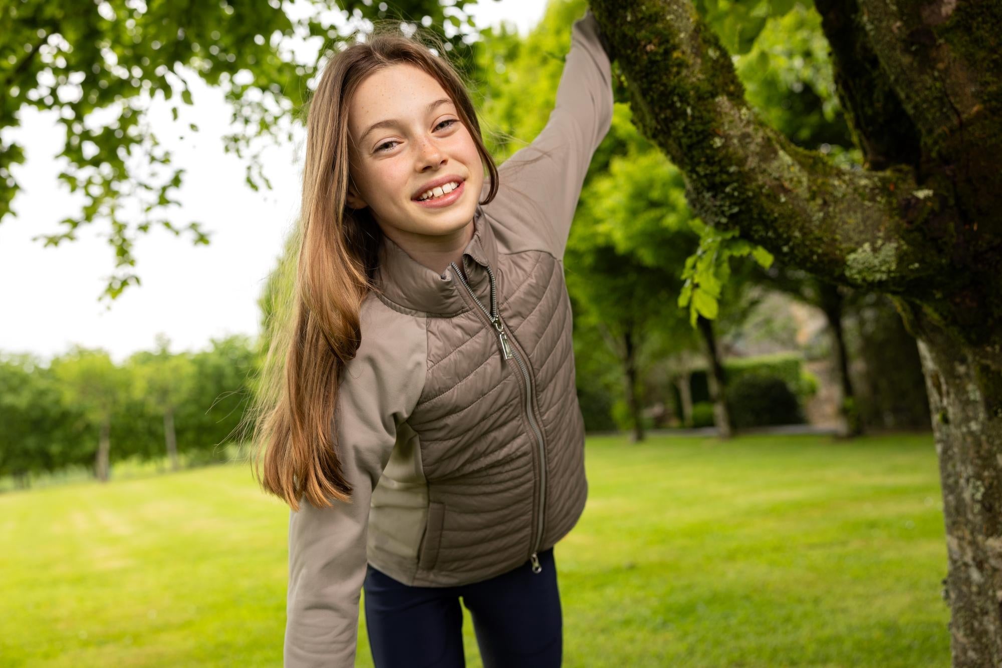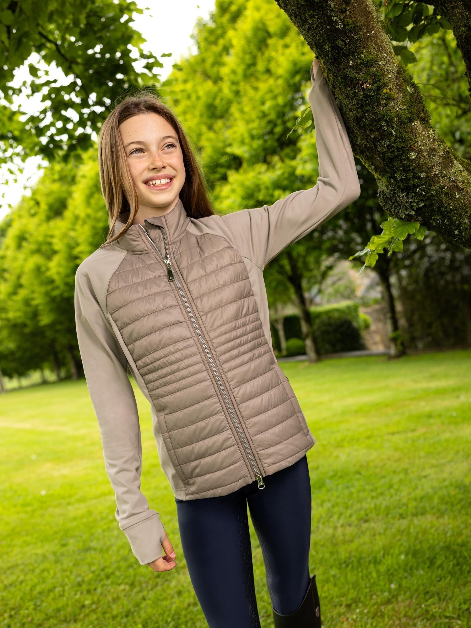 Designed for layering under coats, this style has super soft jersey sleeves and side panels for a flattering fit, while lightweight woven baffle quilted insulation at the back and front keeps you cosy and warm. As a step toward sustainability, the non-slip fill is made with fully recycled materials.The discreet high-build LeMieux print logo on the chest and a metal badge LeMieux logo on the back of the neck indicate a mark of quality.