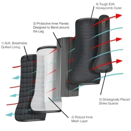 The Equilibrium Tri-Zone Impact Sports Boot are the ultimate, incredibly lightweight sports boots for all round protection for your horse. These boots can be used for cross country, showjumping, schooling and turnout offering full protection in all conditions. These Impact Sports Boots are extremely lightweight (feel it to believe it!), flexible, breathable and offer the ultimate protection – everything you need in one boot! Designed to not soak up water, these boots remain lightweight in all terrain and weather conditions to reduce fatigue and so as not to hinder your horse's performance. The airflow design reduces build up of heat ensuring tendons remain cool to reduce the risk of sustaining injury. A tough EVA honeycomb outer increases the amount of flexibility in this boot, while strategically placed strike guards offer optimum protection to your horse's lower leg.