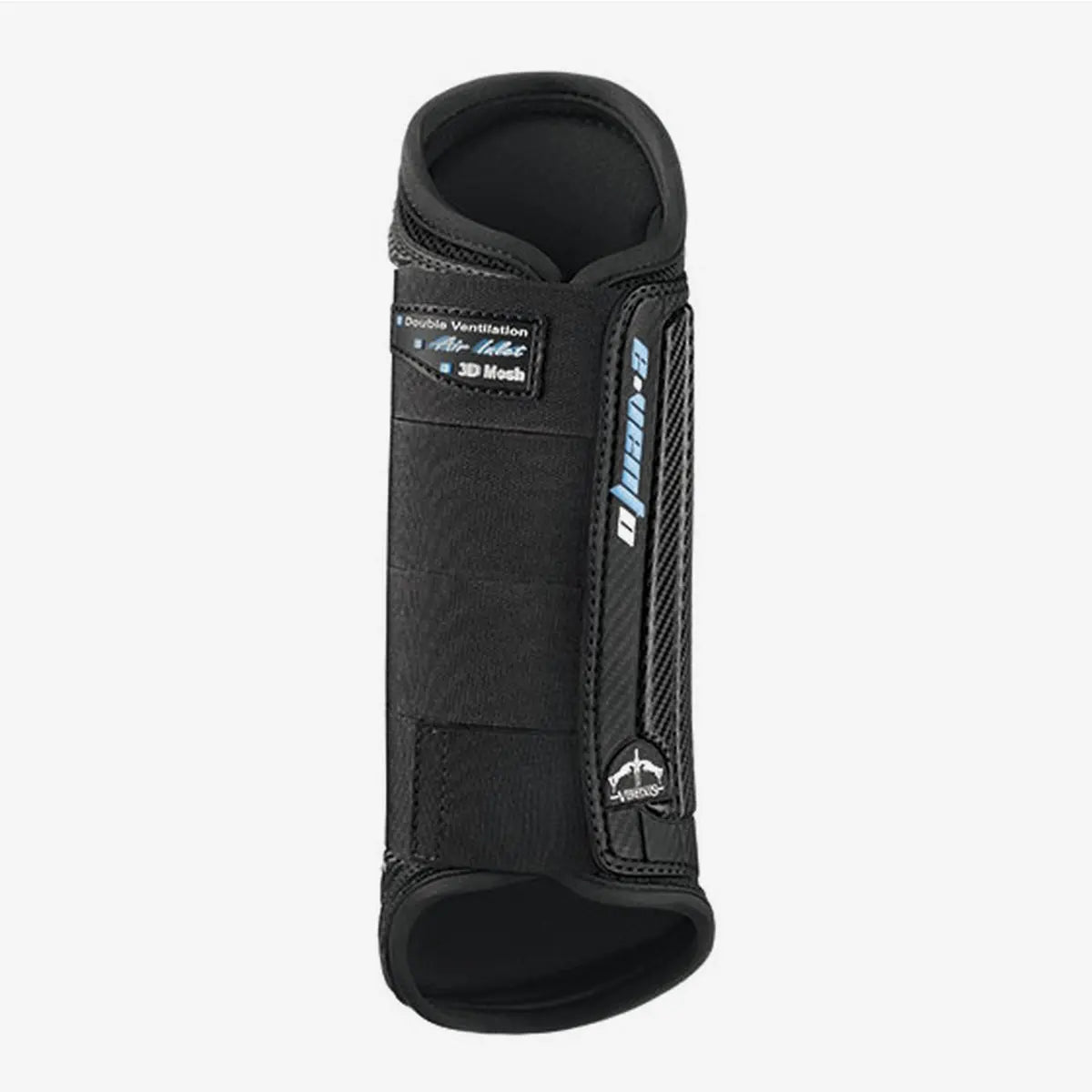 Double ventilation directs the heat released from the horse's legs through the microperforated neoprene layer, which is then distributed in the 3D mesh ducted fabric. Air is tunnelled through specialist inlets as the horse moves which directs accumulated body heat outwards through the technical ducted fabric. The microperforated neoprene AEROX layer sits against the horse's skin and allows it to breathe, while avoiding any sweating and overheating of the tendons.
