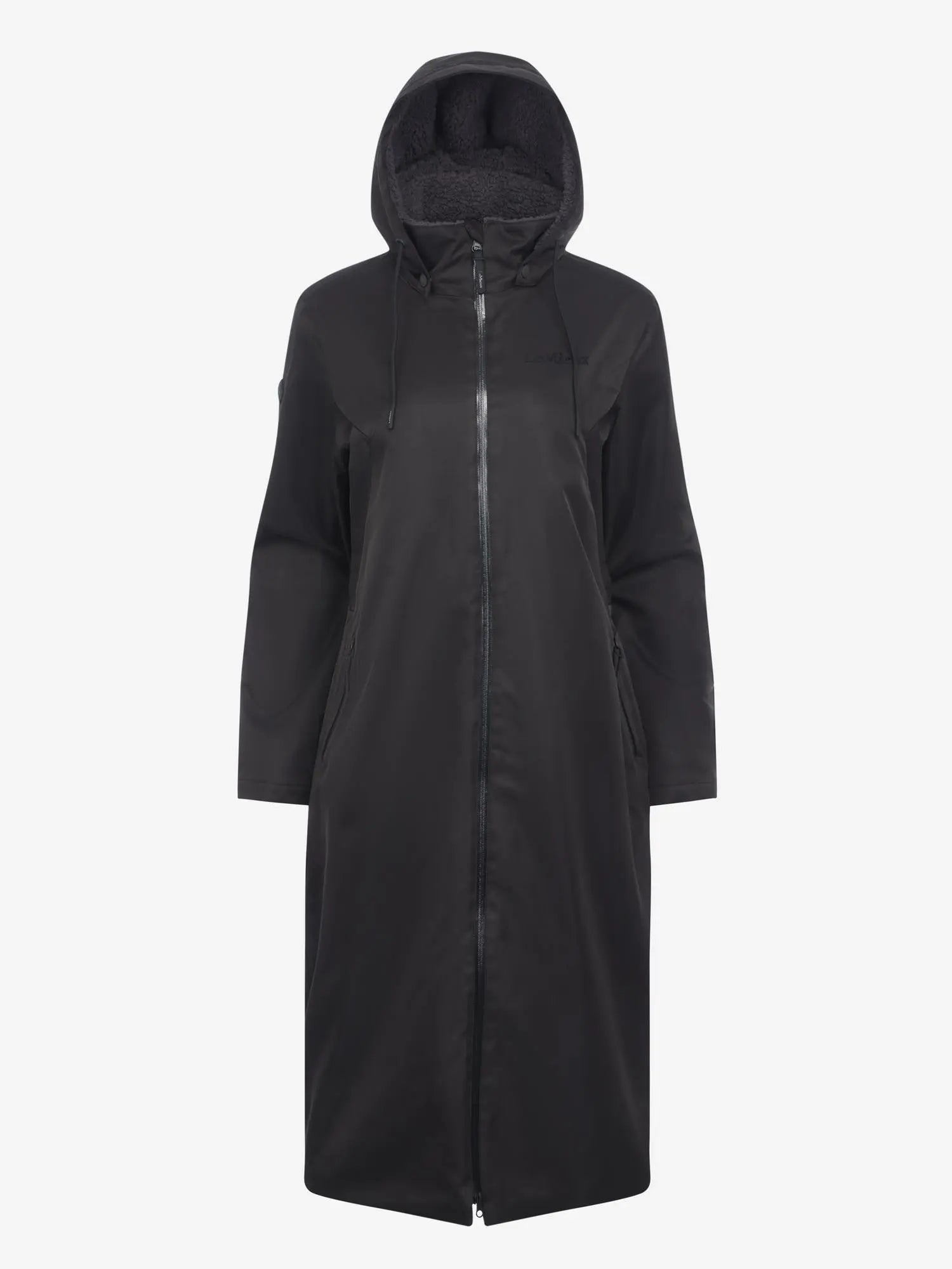 • Full length with sherpa fleece lining • Waterproof with fully welded seams and storm cuffs • Detachable adjustable peaked hood and upper airflow vents front and back • PFC-free waterproof fabric• Cosy fleece lined handwarmer pockets, lower zipped pockets • Two-way front zip and back hem vent for fitting over saddle • •