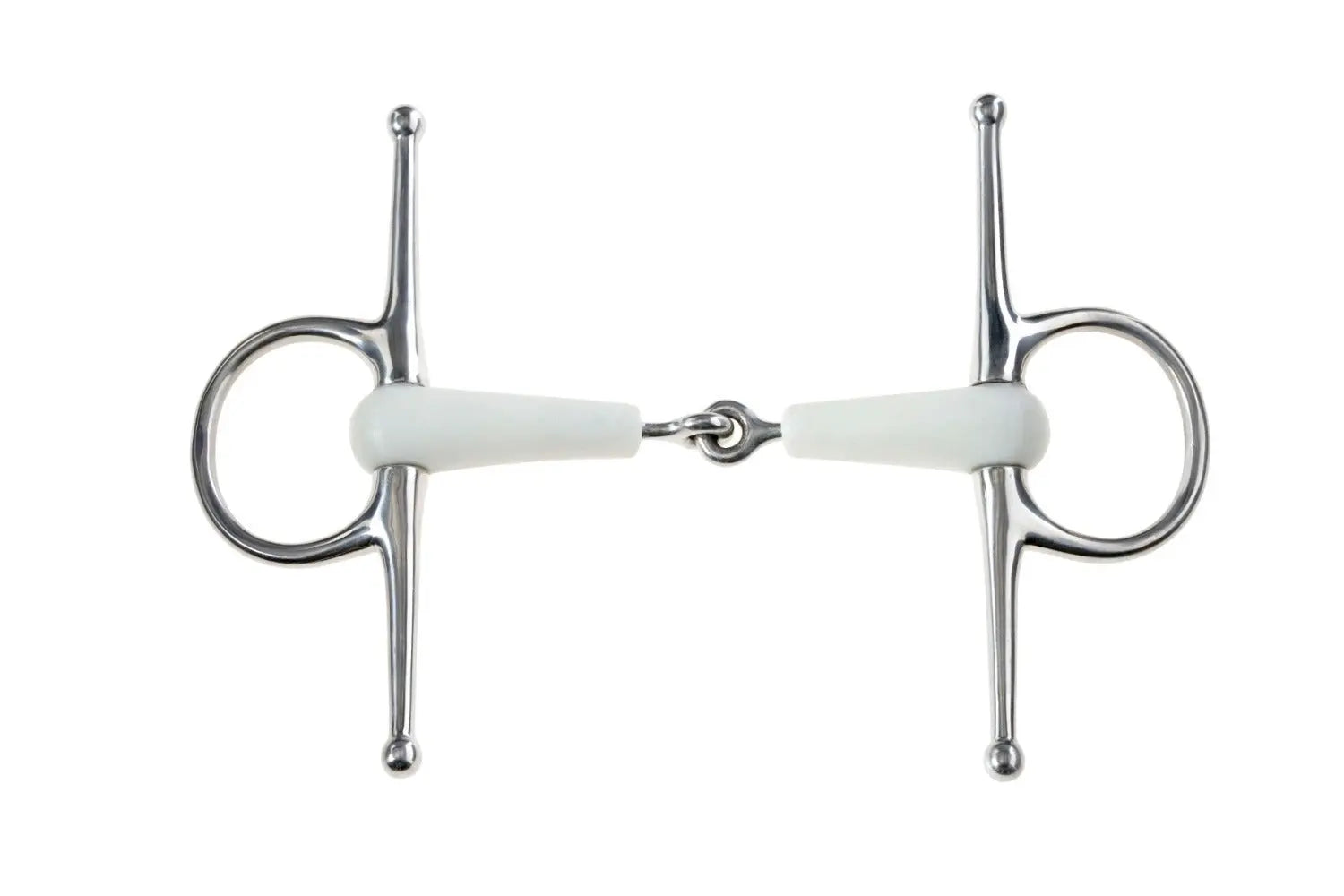 The full cheek snaffle has narrow arms which project above and below the rings, preventing the mouthpiece from sliding in the horses mouth and to emphasize the turning aid.