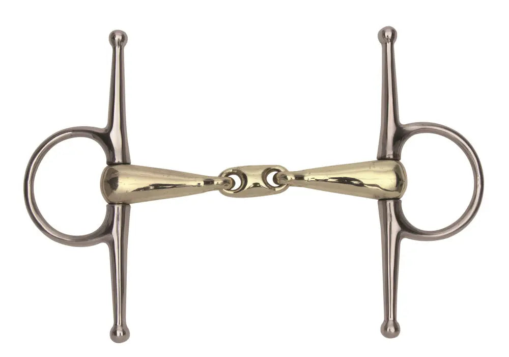 Brass alloy mouthpiece is durable, warm and palatable; this increases salivation to encourage acceptanceLozenge mouthpiece is kind and mildFull cheeks aid turning and steeringA good choice for young horsesBritish Dressage legalAvailable in 4.5", 5" and 5.5"