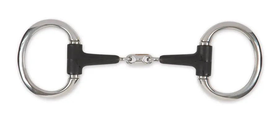 The Shires EquiKind+ Eggbutt Peanut Link Snaffle is a kind, mild bit which helps to encourage a softer contact. This bit is stainless steel with EquiKind+ coating; EquiKind+ bits are ideal for sensitive mouths or horses which are adverse to metal bits.