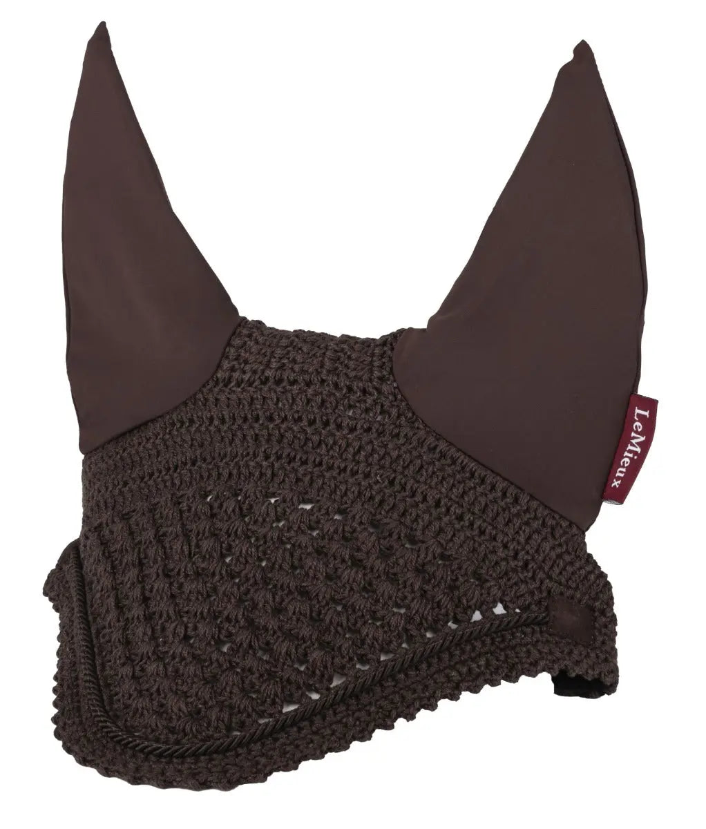 The LeMieux Vogue Fly Hoods are handmade, close knit crochet fly hoods trimmed with twisted rope braiding for an eye-catching look. The comfortable, high-density ear fabric protects your horse from biting flies and insects while effectively softening sound. These fly hoods colour co-ordinate with the pads.