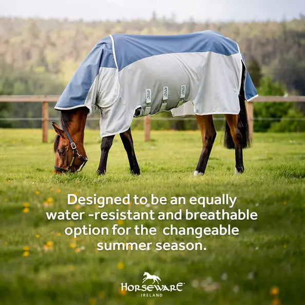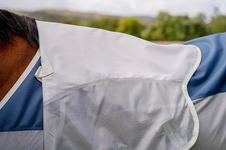 Stay prepared for changeable summer weather with the Horseware® Amigo® AmECO Combi Fly Rug – an eco-friendly, high-performance rug made for the environmentally conscious equestrian. Part of the Horseware® Eco Collection, this innovative fly rug is crafted from a technical fabric using recycled plastic bottles, offering sustainable protection for your horse and the planet. The waterproof top panel provides 100% UV protection and shields against summer showers, while breathable mesh sides keep your horse cool and protected from biting flies.
