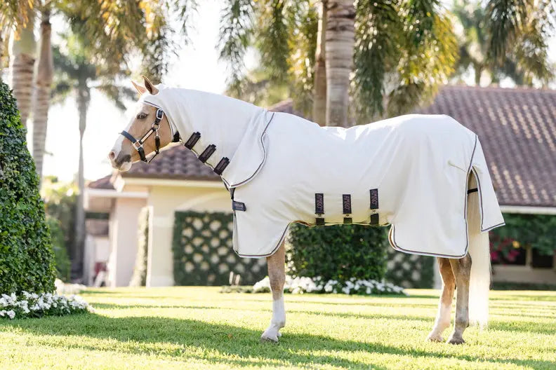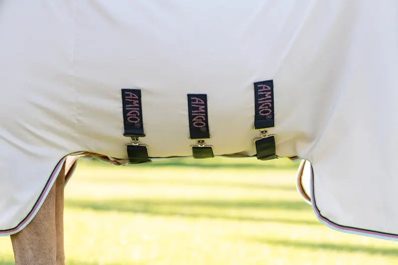 Protect your pony from summer irritations with the Amigo® Ripstop Pony Hoody – a durable, breathable fly rug designed to shield against UV rays, flies, and skin sensitivities. Made from a tough 600D polyester ripstop fabric, it offers 90% UV protection while ensuring comfort and durability throughout the season. The integrated hood provides full-coverage protection, while silky linings at the mane, shoulders, and tail flap help reduce rubbing and prevent bacterial build-up.