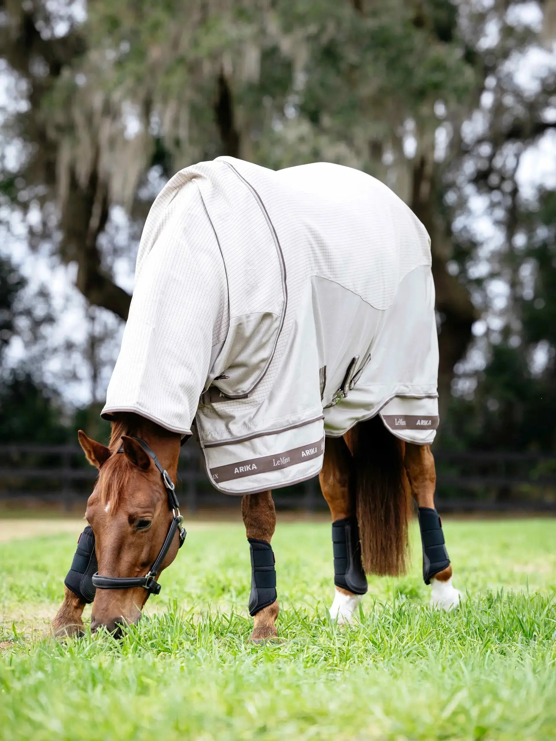 The breathable micro-mesh lower section defends against flies and insects and promotes airflow.
