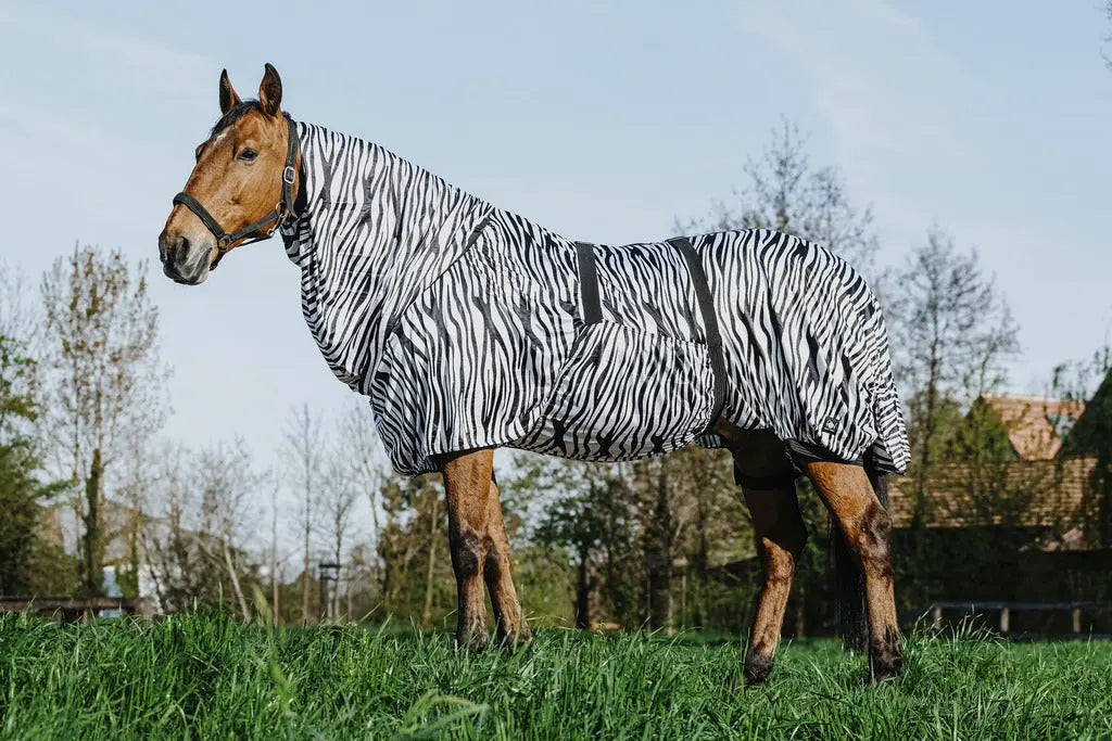 This sweet itch sheet offers full coverage from poll to tail with great adjustment to achieve the perfect fit. In zebra print, scientifically proven to assist in reducing the number of landing flies.