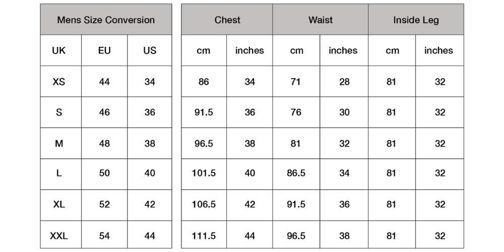 Available in sizes X Small - XX Large.
