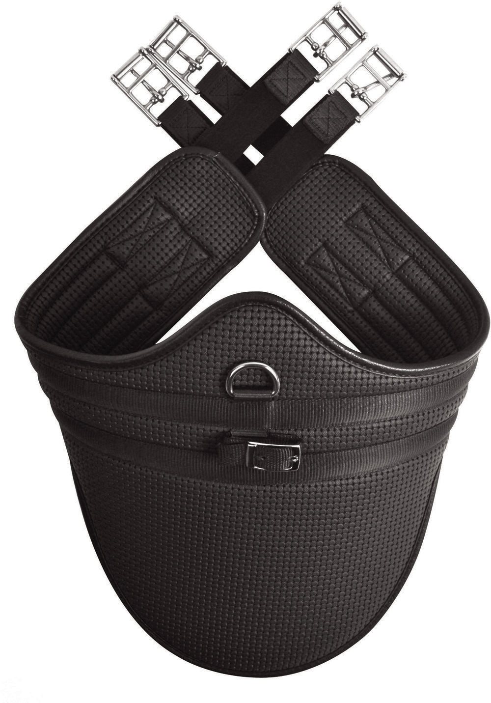 Anatomically shaped stud guard to help promote freedom of movement particularly over fences. Super strong yet soft material, textured to allow airflow. Shaped for extra comfort. Broad belly pad with a martingale attachment and ring. Moves comfortably without chafing or rubbing. Elasticated at both ends with Stainless Steel roller buckles. Easy to wipe clean.