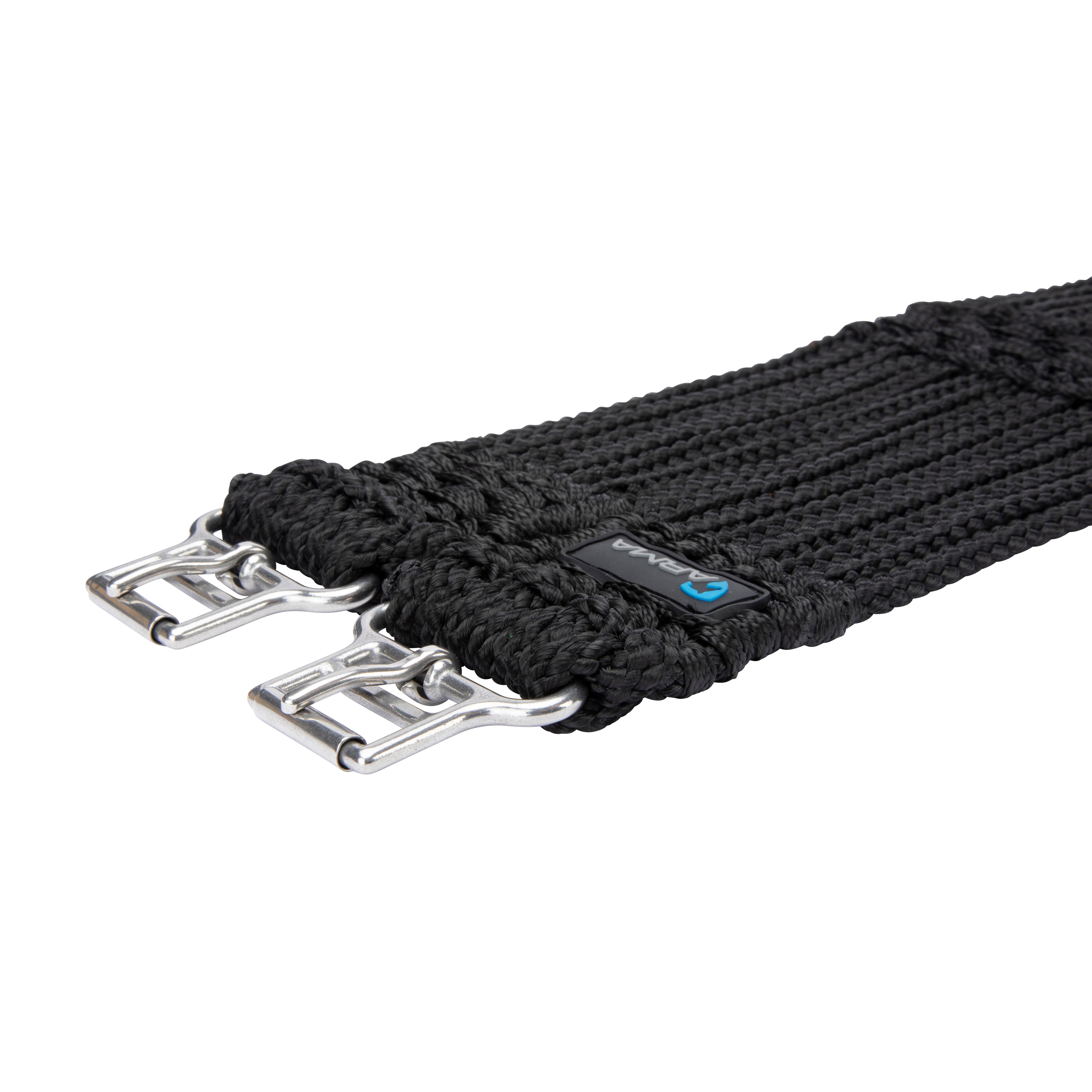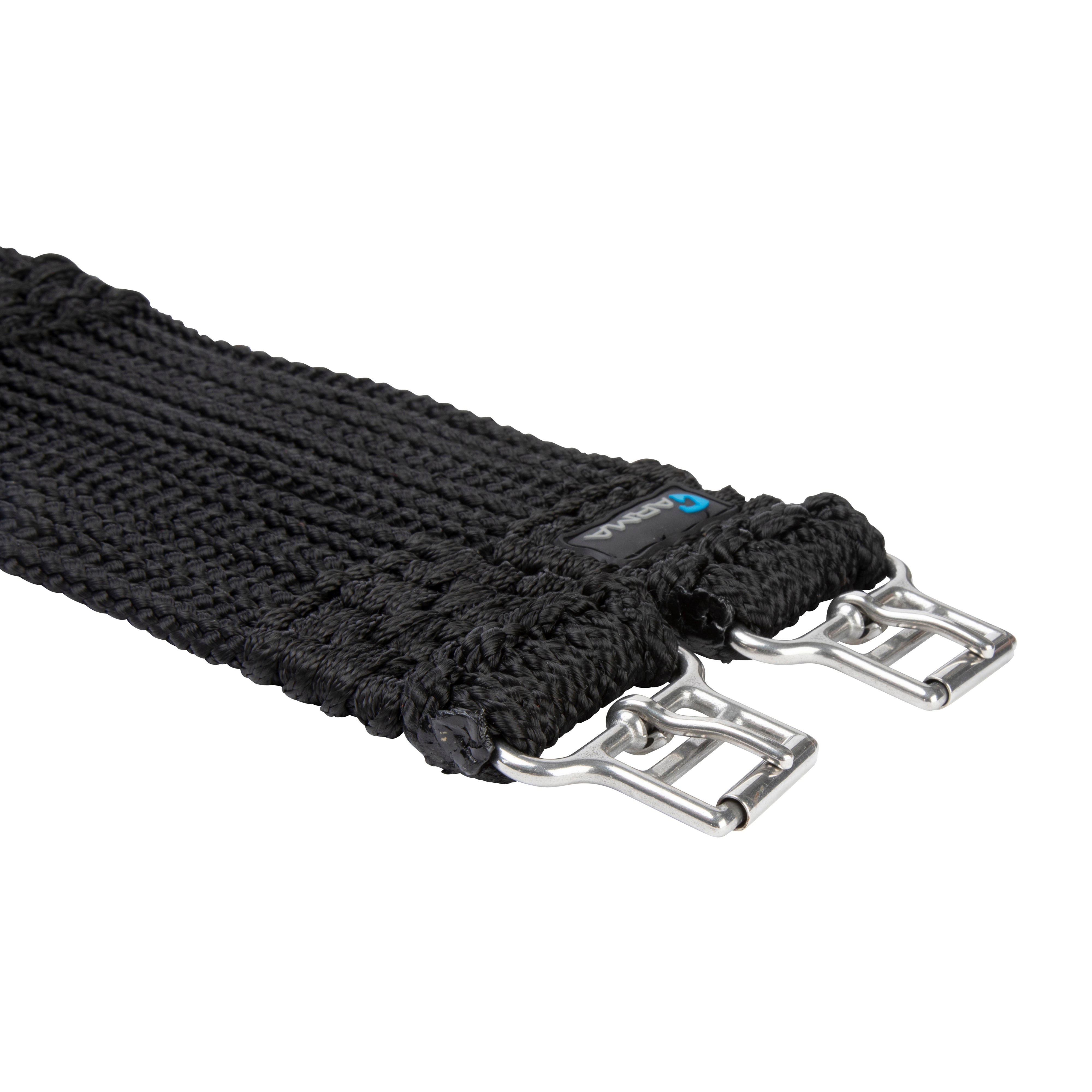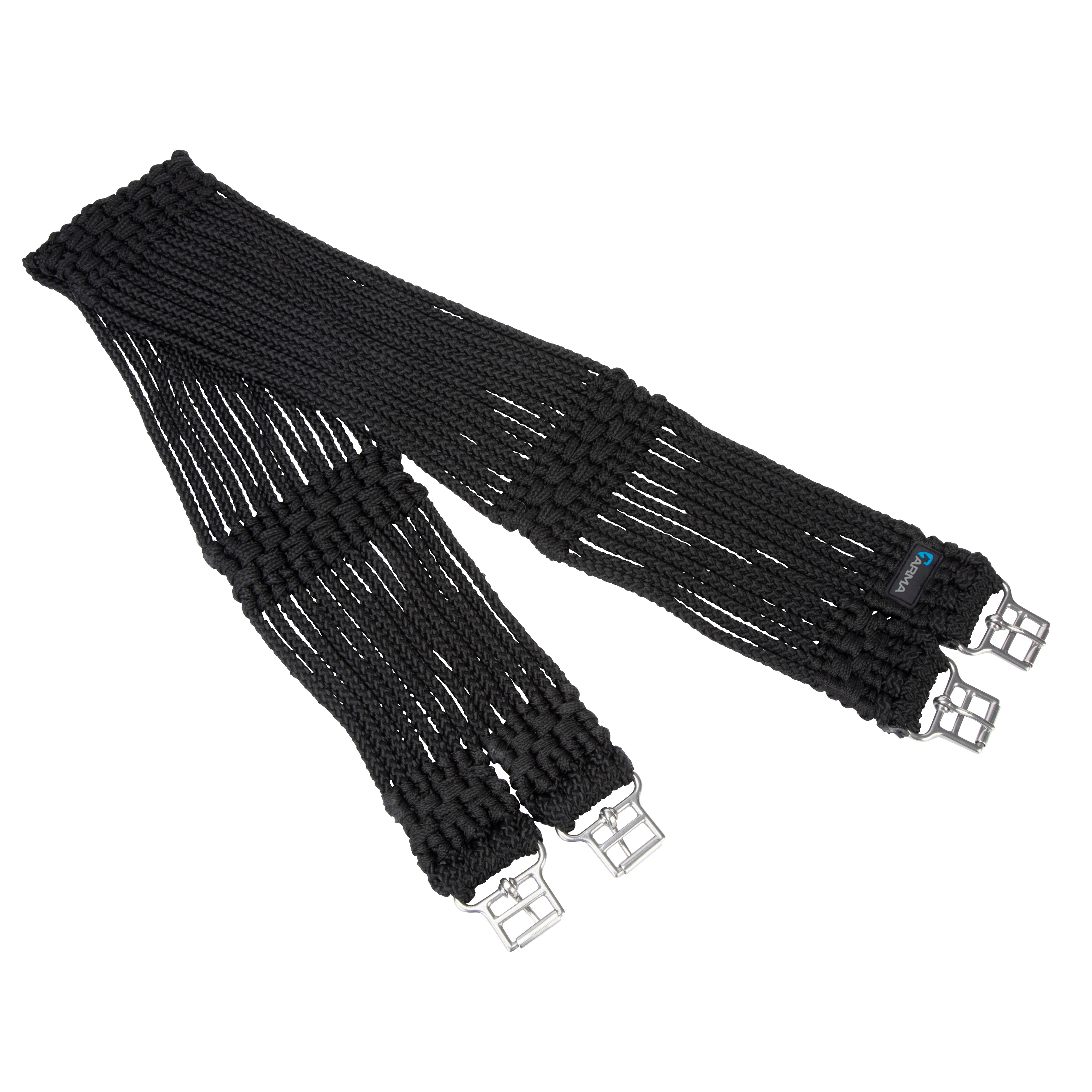 Useful for horses sensitive around the tummy, the ARMA braided girth is made from hard wearing synthetic woven cord arranged with a wide weight bearing area. The 14 cords are braided into segments which equally allow air flow directly to the tummy to promote dryness whilst keeping the girth tidy and secure. Although the girth will not stretch, the cord does offer natural flexion which assists with comfort while the horse is in motion. Fitted with anti-rust roller buckles.