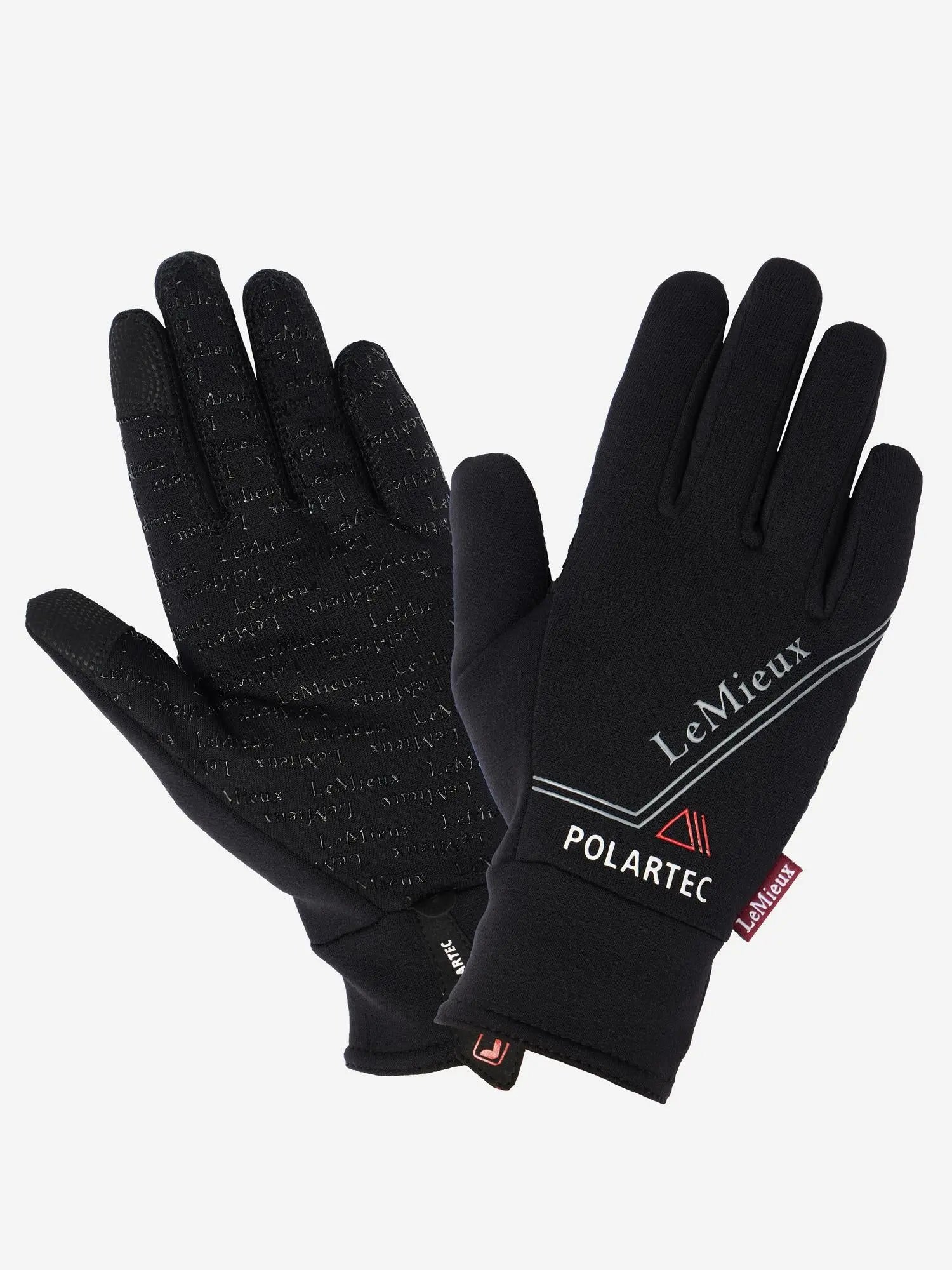The LeMieux Polartec Gloves provide superior grip in wet weather with their power grip silicone under the palm.
