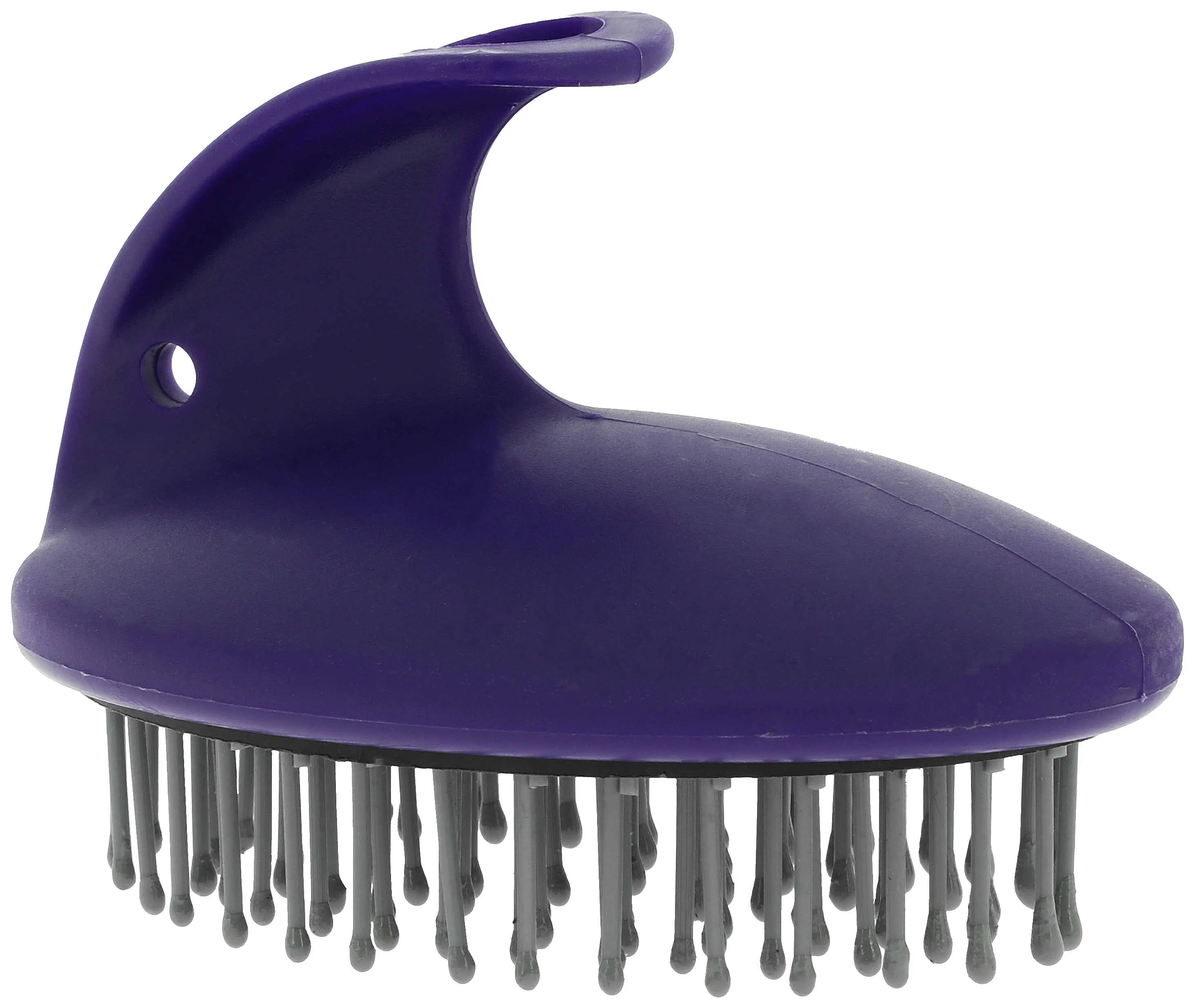 - Plastic bristles that scrape and detangle without damaging the horse's skin.