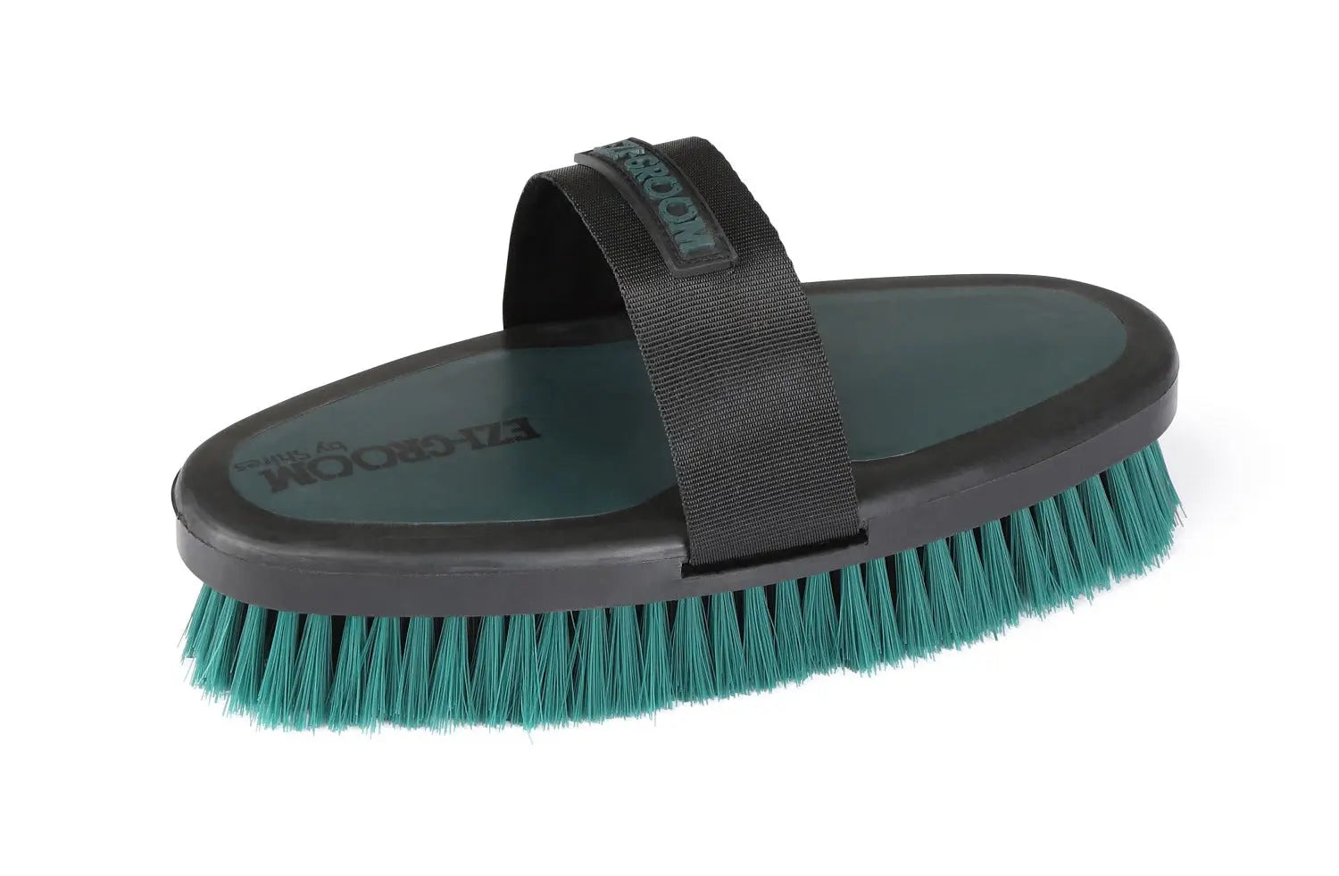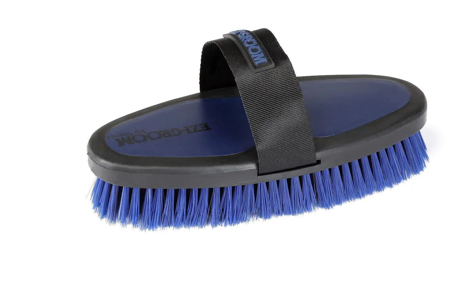 Soft hold grip back, web hand strap, soft bristles. Soft enough for clipped horses or fine coats. 200mm long, 25mm bristles