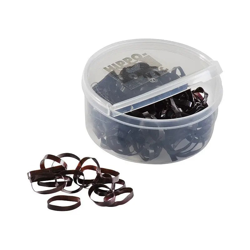 Approximately 450 bands per tub or larger tubs of 1800 bands in black or white.